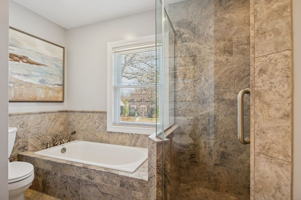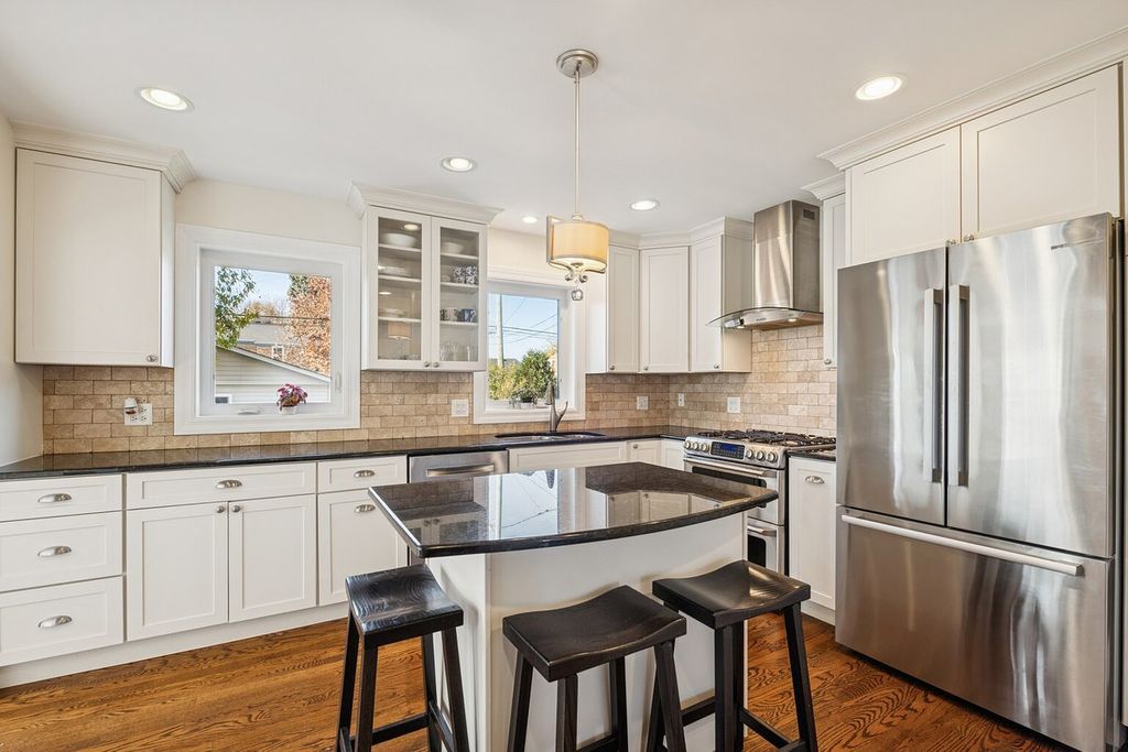 Beautiful and fully updated from top to bottom! 3 bedroom 2.5 bath lannonstone Colonial in highly sought after location. Completely renovated with high quality finishes and excellent design team in 2015 added upgrades galore so there's not a thing to do but move in! Slate foyer leads to sun-drenched living room with custom built-in bookcase surrounding fireplace. Fully updated kitchen with island seating, stainless steel appliances, custom cabinets, high end appliances and space to spare! Formal dining room adjacent to kitchen with views of park- like yard. The former attached garage fully renovated in 2019 to create a completely insulated finished first floor family room/flexible space perfect for entertaining, work from home or fitness studio. Second floor features 3 bedrooms including primary with expanded closet and entrance to updated full bathroom that offers walk in shower, soaking tub, and double vanity with high end finishes. Basement offers spacious recreation room, a private office that's also perfect additional area for guests, a 2nd large and recently added full bathroom with walk in shower. Jumbo sized, cheerful basement laundry room. Updated deck overlooks generous, landscaped yard with space for dining, sports, parties, gardening and more, a Newly built 2 car garage and flagstone path to mudroom entrance. Front yard features landscaping designed by Kiave Design. Too many updates to list including high end newer windows throughout the entire home, new concrete driveway and sidewalks, updated and upgraded plumbing and electric throughout, 2019 new insulated carriage doors added, huge 2nd floor balcony with treetop views, more outdoor space to host a party or just enjoy the sunshine.