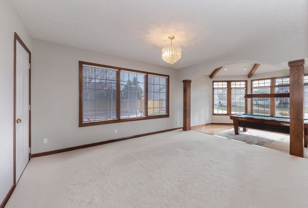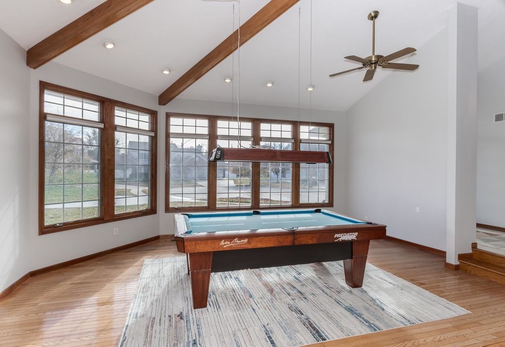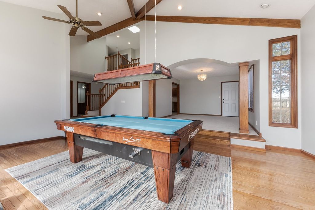 Custom Built in Garling Heights! This 5 bedroom, 3 1/2 bath home has over 4,000 sq ft, and sits in a quiet cul-de-sac! Huge, Sunken living room with hardwood floors, long windows, & vaulted ceilings! Tons of natural light! Pool table & overhead light-reserved for seller. Formal dining room with additional exterior door. Abundance of cabinets and drawers in this well appointed kitchen with tiled floors, long counterspace and island! Room of bar stools at the breakfast bar and huge walk in pantry space! Exterior door next to stove-perfect for quick access to the grill & smoker! 2-Story family room with stone fireplace, built-ins, and additional spiral staircase! Main floor bedroom and full bathroom for extra family, & guests, & could be used as office space!! Large main floor laundry room with additional sink and door leading to back covered porch. And has a laundry shoot! 2nd floor showcases a Primary bedroom overlooking 2-story family room, en suite with separate shower, whirlpool tub, double sinks & large walk in closet! Laundry shoot located in en suite bathroom! 3 additional large bedrooms on 2nd floor and full bath. Finished basement with 1/2 bath, egress window, work-out space added with floor mats that stay, & separate room for work-shop! Garage added EV charger & gas heater for those cold winters!! Private backyard, tons of landscaping, and side yard for play! Newer extended concrete patio added for entertaining! Ring doorbell stays. Newer skylights installed! Newer roof-2018! Close to schools, shopping, and parks!
