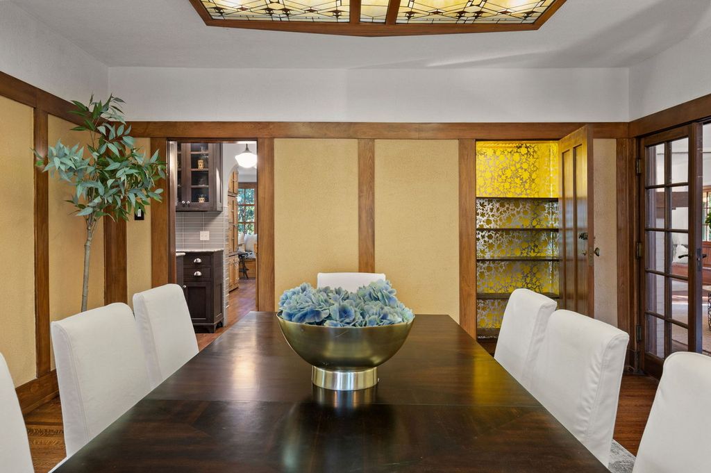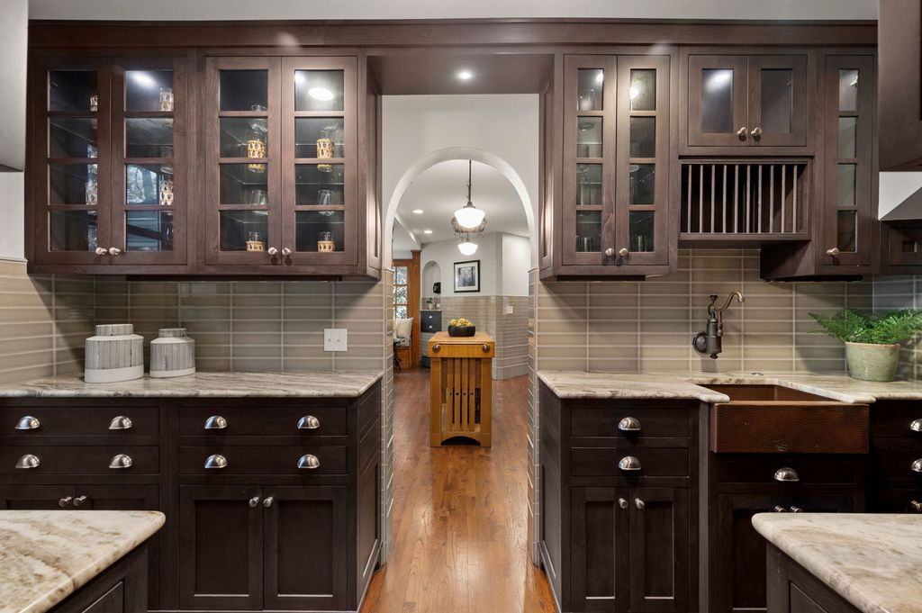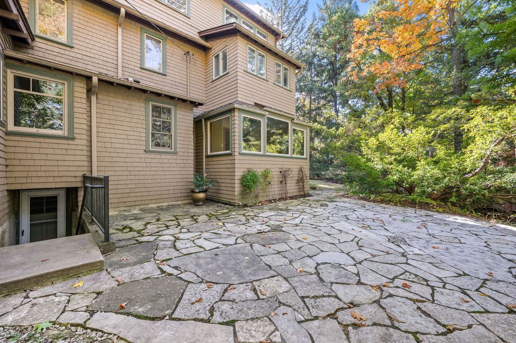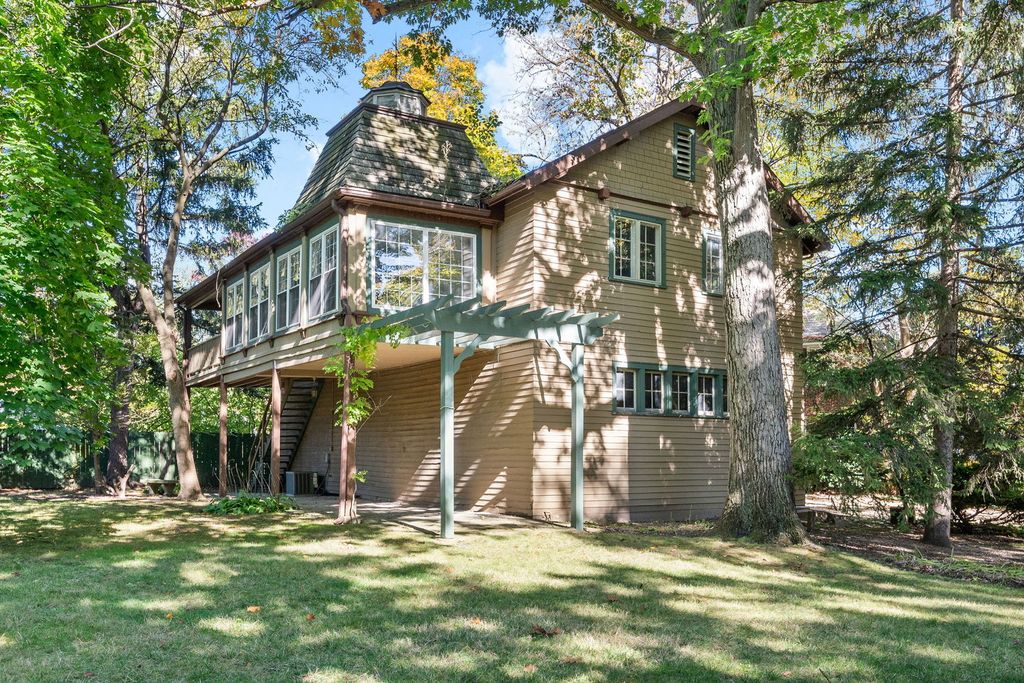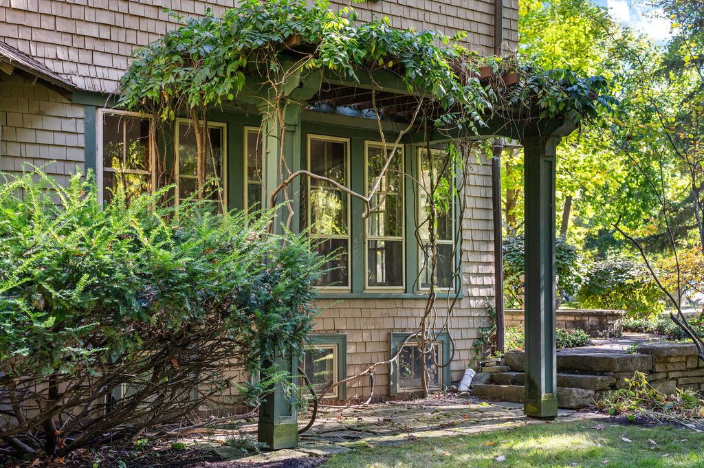 Thornycote a 1901 English Arts and Crafts design by Howard Van Doren Shaw, is a home where craftsmanship, harmony, and grace still define daily life. Set on over an acre of lush, landscaped land near Lake Michigan, this residence invites admiration and offers a sense of place within its storied past. A handsome foyer introduces the home's refined proportions and the richness of its historic woodwork and integrity. Every detail reveals Shaw's thoughtful design, from the formal living room centered around a commanding wood-burning fireplace to the spacious family room that opens onto a generous terrace. The gracious dining room flows seamlessly into a bright sunroom-ideal for morning light or evening relaxation. A library, timeless and rich in character, offers quiet retreat, while the renovated kitchen-complete with custom cabinetry, butler's pantry, coffee bar, and mudroom-blends modern convenience with historic charm. An extra-wide staircase leads to the second floor, where the primary suite serves as a private haven with an adjoining sitting / dressing room, a wood-burning fireplace, and a spacious, updated bath overlooking the grounds. Two additional large bedrooms share a full bath and connect to a cozy sitting room, perfect for reading or play. A second-floor laundry adds ease to the home's elegant functionality. The commodious third floor provides remarkable flexibility with four bedrooms, two full baths, and a large bonus room suited for a playroom, home office, media lounge, or studio. Beyond the main residence, a 1,600-square-foot coach house is a rare opportunity with four garage bays, a two-bedroom suite, and a conference room overlooking stunning ravine views framed by two stone bridges-a setting where work, creativity, and nature coexist. Every corner of Thornycote reveals a story: a hidden speakeasy behind a mirrored door, secret gardens, and pathways designed for exploration. Just steps from downtown Highland Park's shops, restaurants, library, and train, this landmark residence blends architectural heritage with modern comfort-an enduring expression of Shaw's artistry brought gracefully into the present.