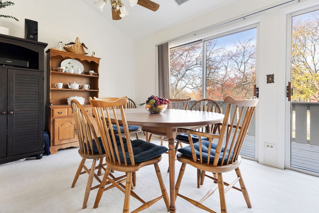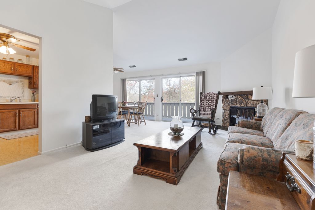 Welcome to this nice 2-bedroom, 2-bath coach home located in Lexington Village. Entering the home you will be greeted with a cozy corner fireplace and vaulted ceilings in the living room and dining area! Recently painted through out! Brand new stove as of Nov 2025. Good size primary bedroom with nice size walk-in closet. Some amenities are ceiling fans, walk-in pantry and large balcony off living room. Close to Schaumburg public library, shopping and restaurants. Award winning J B Conant High School!