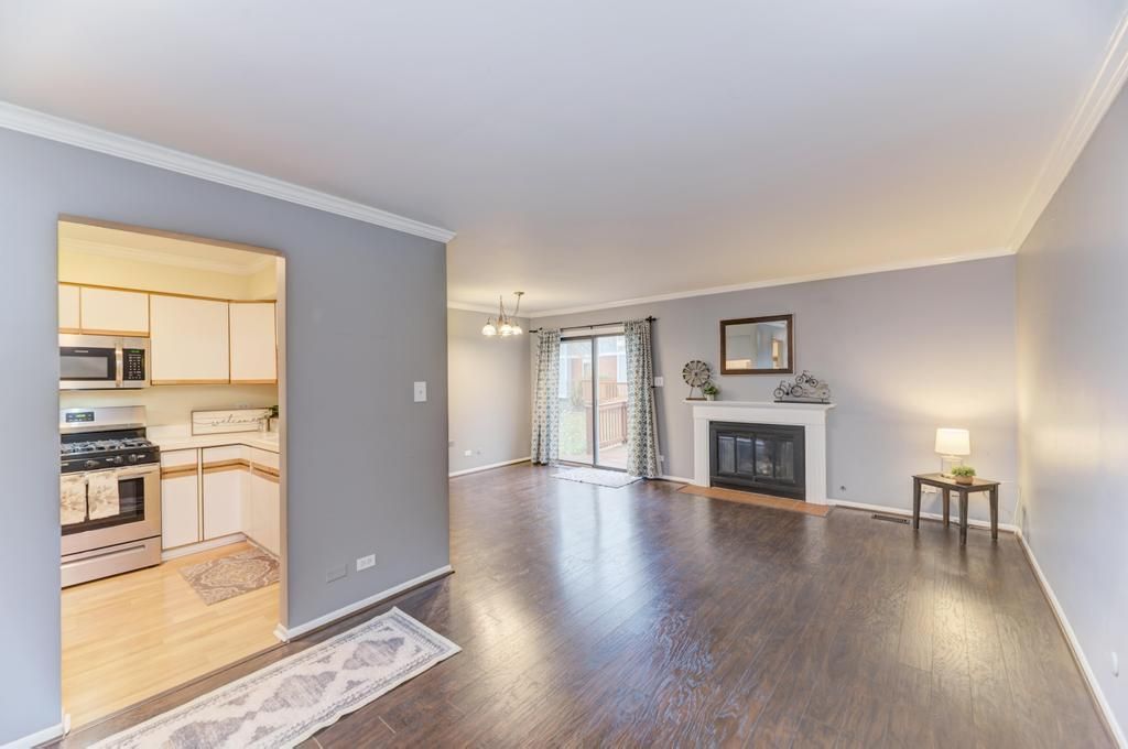 MULTIPLE OFFERS RECEIVED. BEST AND HIGHEST DUE SUNDAY, NOV 23 AT 9 AM. Welcome to this charming end-unit townhome featuring a private entrance and an attached one-car garage. The first floor offers Pergo flooring, spacious room sizes enhanced by crown molding, and a cozy fireplace with ceramic logs. The kitchen features a neutral palette, newer stainless steel appliances (2022), a newer faucet (2024), and a garbage disposal (2025). A convenient powder room completes the main level. Upstairs, the spacious primary suite includes a full wall of closets, a ceiling fan with a light, two-inch blinds, and neutral carpet. The secondary bedroom features white built-in shelving, decorative wall decal, and a walk-in closet. The hallway bath maintains a clean, neutral style. The unfinished basement provides excellent storage or the perfect opportunity to create additional living space. Additional updates include a washer and dryer replaced within the last five years, a water heater (2023), and an ejector pump (2025). Outdoors, a nicely sized deck overlooks serene green space-ideal for relaxing or entertaining.