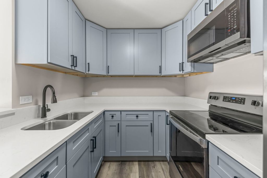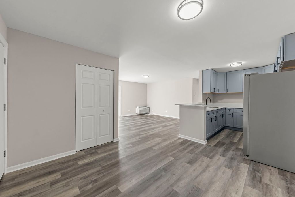 Welcome Home! Step into this beautifully remodeled 1-bedroom, 1-bath second-floor condo featuring a private balcony and modern updates throughout. The newly renovated kitchen showcases quartz countertops, a breakfast bar, and stainless-steel appliances-perfect for everyday living or entertaining guests. The spacious bedroom includes a large walk-in closet for ample storage. Enjoy convenience and comfort with two assigned parking spaces (#8 & #46), plenty of guest parking, and a laundry room located on the same floor. Ideally situated just minutes from the Metra, major expressways, and O'Hare Airport, this home is perfect for commuters. Remodeled in September 2025, this move-in-ready condo is waiting for its next owner. Property sold in "As Is" condition.