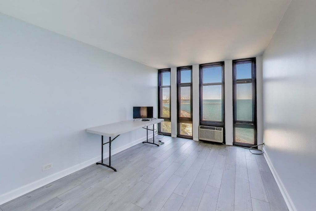 Welcome to this gem in one of the South Shore's most desirable communities! This corner 2BR 2BA unit has stunning views of the lake and the city from every window, even the primary bedroom walk-in closet! You will enjoy the beauty of the city night light, changing autumn leaves, and gorgeous sunrises! The rooms are spacious and the upgraded interior includes brand new ac units in the living room and primary bedroom, and vinyl wood flooring throughout. The primary bathroom has a walk-in shower and elegant granite finishes. The modern kitchen boasts granite countertops and is spacious enough for a table. Quadrangle Condominiums boasts an on-site manager, a doorman, fitness center, and penthouse laundry room (also w/extraordinary views!) and the unit comes with TWO parking spaces, one garage and one exterior. Come make this your new home and experience South Shore's vibrant community and continued growth, spurred on by the upcoming completion of the Obama Center.