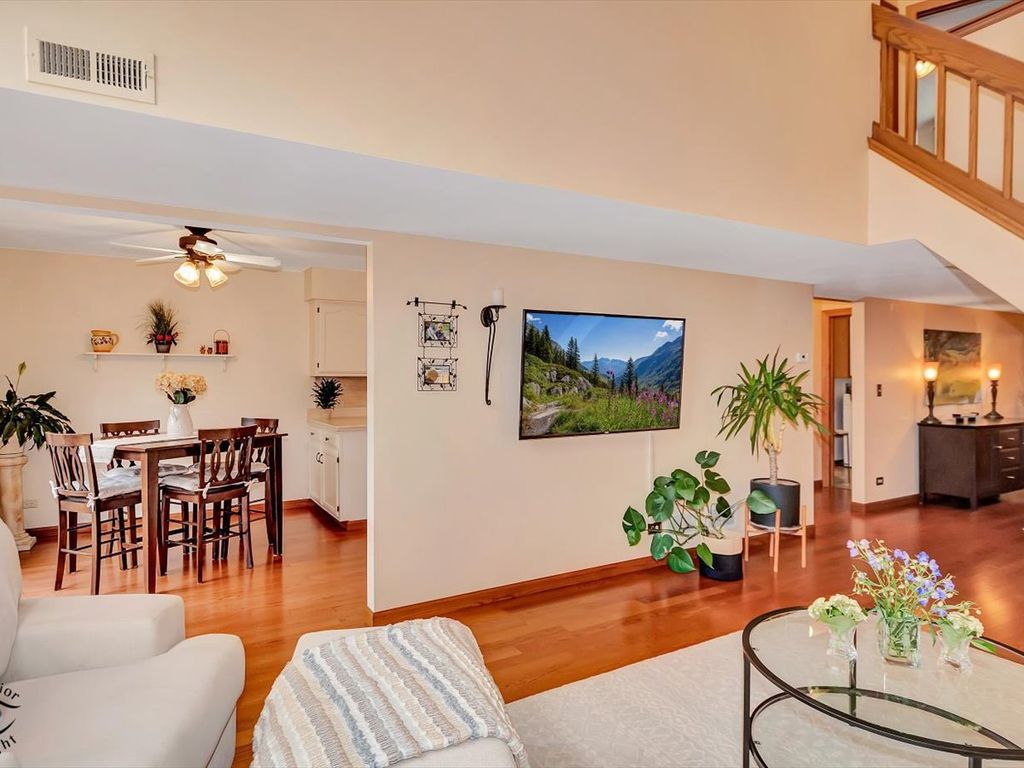 Welcome to Darien Pointe's finest! Pride of ownership shines throughout this home, it's perfectly maintained and in pristine condition. All you need to do is bring your personal effects. Beautifully appointed open concept living area featuring a cozy fireplace and expansive atrium window with Hunter Douglas silhouette blinds & gleaming hardwood floors throughout the entire first floor. 6-Panel solid oak doors throughout the home. The eat in kitchen is fully equipped with all stainless-steel appliances, Corian counters, and large table area, with full view of the private patio. First floor full bath with step in shower has been beautifully updated. The stunning hardwood staircase leads to the upper-level loft that looks down onto the warm, inviting living area below. The two generously sized bedrooms share a well-appointed beautifully updated walkthrough bath with separate glass enclosed stand up shower and 6-jet whirlpool soaking tub. The Master bedroom also boasts a deep (11 foot) walk in closet. The loft can be used as an additional guest room, craft, office space or can be converted to a 3rd bedroom. The large laundry room has an additional storage nook. This home is within minutes to I-55, I-355 and I-294, and near all amenities including transportation, shopping, schools and 5-minute drive to Waterfall Glen walking trails and nature preserve. Ask your agent to share the full list of highlights from the "additional information" section. This one won't last long, reserve your personal tour now!