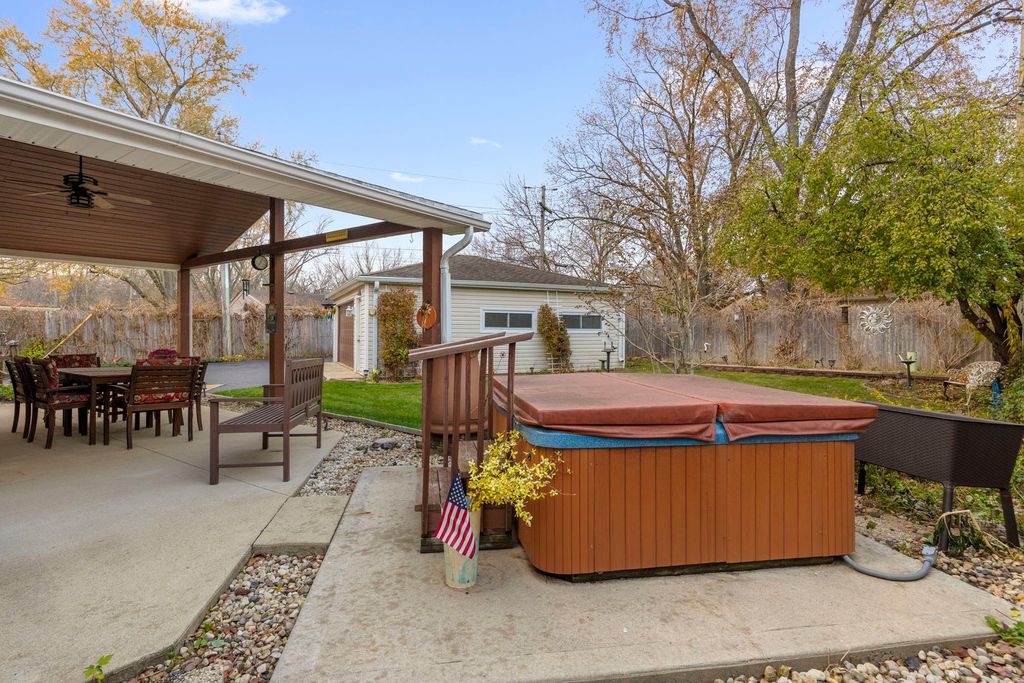 Welcome home to this charming 3-bedroom, 1-bath ranch located in the heart of Wauconda! Step inside to a spacious family room that offers beautiful built-in cabinets, giving you both character and functionality. The warm and inviting living room featuring a cozy wood-burning fireplace, perfect for those chilly Midwest evenings. The living room opens up to the dining room. The kitchen features floor-to-ceiling cabinetry for maximum storage, along with convenient in-home laundry. A sliding door leads you directly to your private backyard oasis, complete with a fully covered patio you can enjoy year-round, plus a relaxing hot tub, ideal for unwinding or entertaining. Outside, you'll love the oversized 2+ car detached garage offering tons of additional storage. This home is perfectly situated near Wauconda schools, downtown Wauconda, shopping, Woodmans, dining, and more!