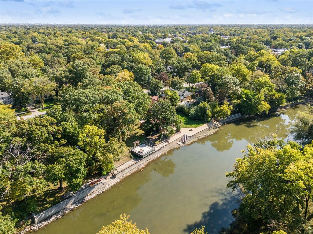 A Rare Architectural Treasure on the Des Plaines River. Welcome to 220 Maplewood, a residence of timeless elegance and extraordinary pedigree. Designed by celebrated architect Charles E. Joern and built in 1938, this exquisite home stands proudly on one of Riverside's premier streets. With only three owners in its history, the property has been meticulously maintained and thoughtfully updated, preserving its architectural integrity while offering modern comfort and refined living. Set on an expansive lot with 100 feet of frontage along the Des Plaines River, the home enjoys a natural backdrop that is both breathtaking and uniquely private. The river and adjoining forest preserve create the feeling of an extended backyard-an extraordinary level of seclusion and tranquility rarely found in the suburbs. Every room in the home is graced with stunning, ever-changing views of the water, mature trees, and wildlife. The landscape is a showpiece in itself. A rich collection of Maple, Ginkgo, Oak, Elm, and Burning Bush trees envelops the property, offering vibrant color in the fall and lush greenery throughout the spring and summer. This harmony of architecture and nature truly elevates the living experience. Inside, the craftsmanship is unmistakable. A slate roof fastened with copper nails, paired with copper gutters and downspouts, speaks to the enduring quality of the home's construction. The living room features French limestone flooring and a gas log fireplace, setting the tone for warm gatherings and sophisticated entertaining. The adjoining dining room offers a gracious setting for hosting. The kitchen blends elegance with practical design, offering solid oak cabinetry, slide-out drawers, a lazy Susan, built-in spice caddy, and premium appliances including a Sub-Zero refrigerator/freezer and Bosch dishwasher. Upstairs, soft wool carpeting adds warmth underfoot, while the generously sized bedrooms provide excellent closet space, including two cedar closets and a cedar linen cabinet. Modern amenities, including a Carrier Infinity heating and cooling system and Pella Architectural Series casement windows and storm doors, ensure comfort and efficiency year-round. For outdoor enjoyment, the property offers private stairs and a boat ramp that provide effortless access to the river-perfect for kayaking, canoeing, fishing, or simply appreciating the serene beauty of the setting in every season. 220 Maplewood is more than a home-it is a sanctuary of history, quality, and natural beauty. A truly exceptional offering in one of Riverside's most desirable locations.