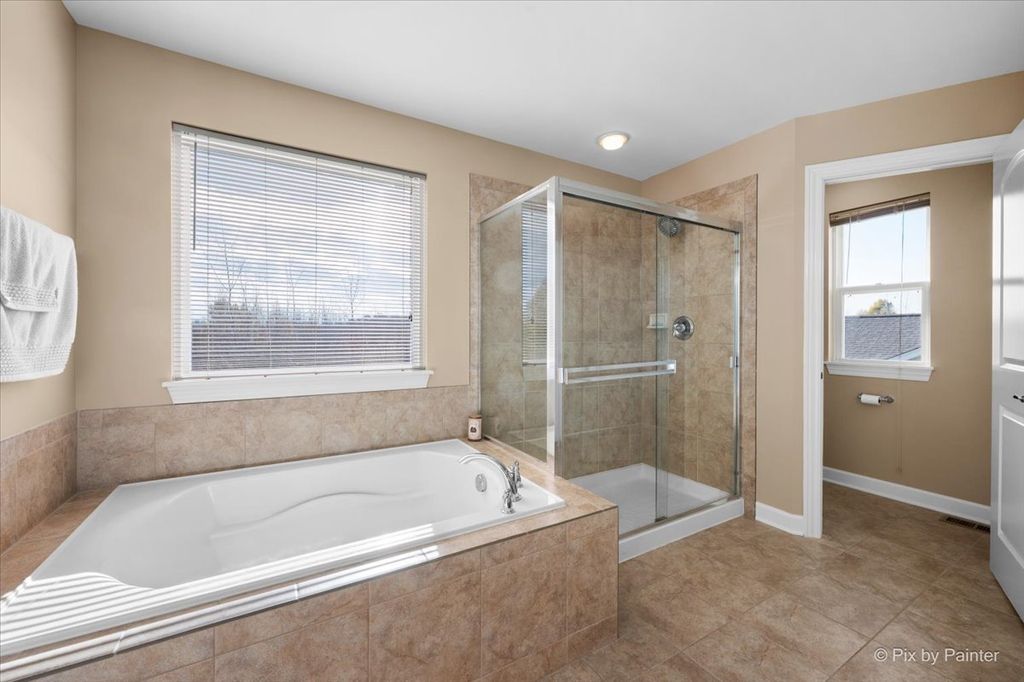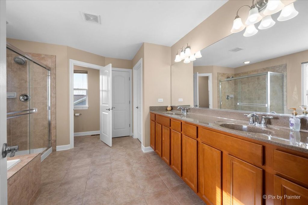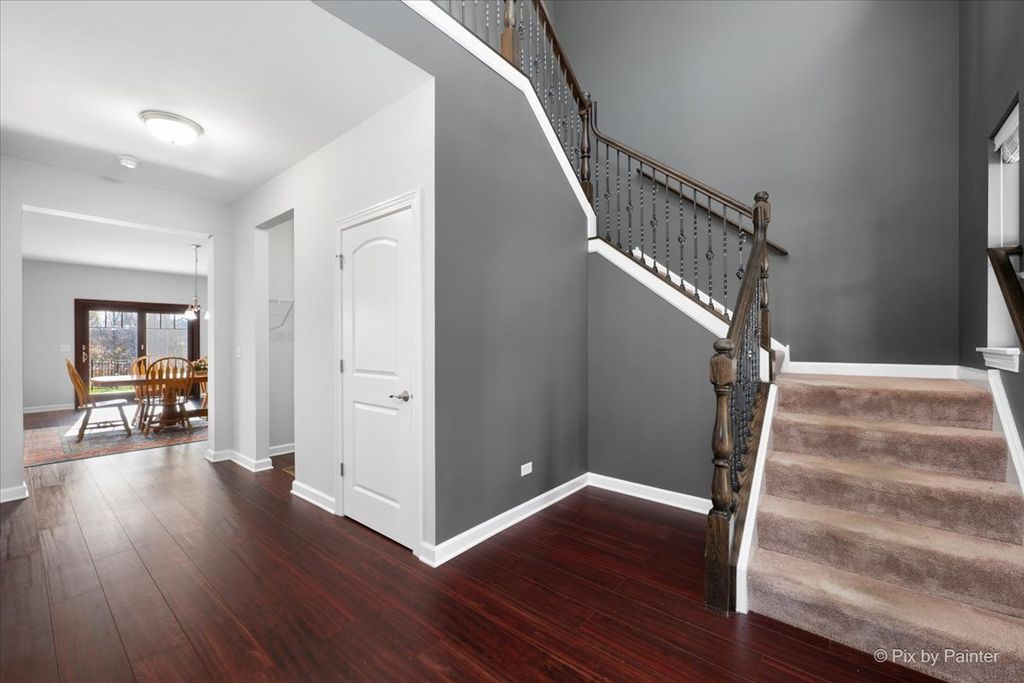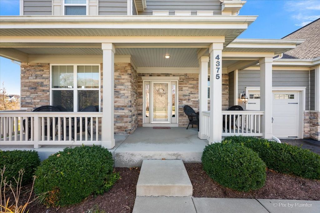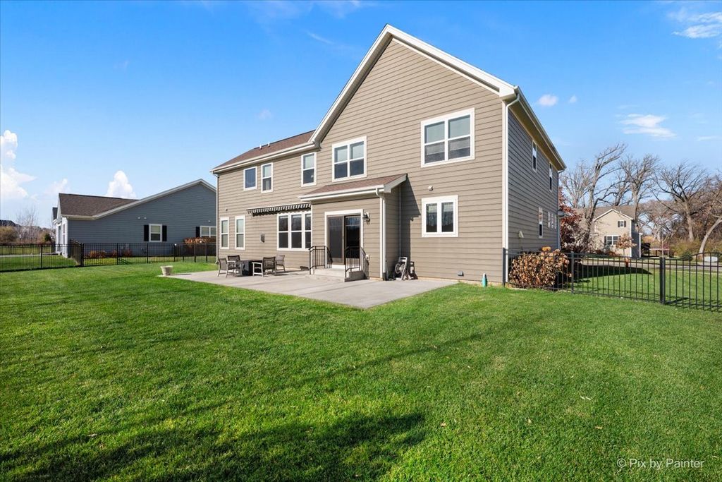 Rarely available Fordham Model in Stonebrook of Elgin. This spacious 5-bedroom home offers a highly desirable first-floor bedroom option along with private full bath on the main level. Step into the grand foyer and enjoy a bright, open-concept layout with 9-foot ceilings that flow from the dining room and butler's pantry into the large kitchen. The kitchen features quartz countertops, a generous island, eating area, double oven, closet pantry, stainless-steel appliances that are only six months old and a bar-height pass-through to the dining room. Upgraded luxury vinyl flooring, installed just four years ago, span throughout the main living levels. The inviting family room offers plenty of space for gathering and includes a cozy gas fireplace. Upstairs, you'll find four additional bedrooms, including the primary suite with double-door entry, a private ensuite bath, and a spacious walk-in closet. The full unfinished basement provides excellent storage or room to expand. Additional highlights include a new washer and dryer with utility sink, beautiful new patio and patio door, a Sunset awning that stays with the home, and HVAC systems serviced twice a year with an added Aprilaire system. Outside, enjoy the fenced-in yard and backyard patio perfect for afternoon entertaining. The 3-car garage and desirable corner lot make this home stand out. Located in the highly sought-after Burlington 301 school district and close to the Randall Road corridor with shopping, gyms, and restaurants nearby. Here, you can enjoy peaceful country scenery while still being close to every amenity and the welcoming feel of a true neighborhood.