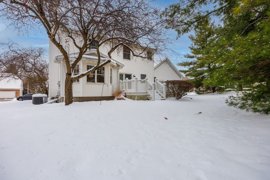 Welcome to this spacious and inviting 4-bedroom, 3.5-bathroom home, perfectly situated on a serene, tree-lined corner lot offering exceptional privacy. A charming front porch and a large 3-car garage provide excellent curb appeal and everyday convenience. Step inside to an open-concept family room featuring a cozy fireplace framed by custom built-in bookshelves-an ideal space for gathering and relaxing. The kitchen offers generous counter space along with both table space and an island, making meal prep and casual dining effortless. Enjoy hosting guests in the separate formal dining room, and take advantage of the additional living room for flexible use-perfect for a home office, sitting room, or play area. Upstairs, you'll find four well-sized bedrooms, including a spacious primary suite with its own private bath. The partially finished basement adds even more livable space, complete with a full bathroom-great for a recreation room, guest area, or future expansion. Outside, a large deck overlooks the peaceful, landscaped yard, providing a wonderful spot for outdoor dining or simply enjoying the natural surroundings. With its thoughtful layout, desirable features, and quiet, private setting, this Bloomington home offers comfort, space, and style-inside and out.