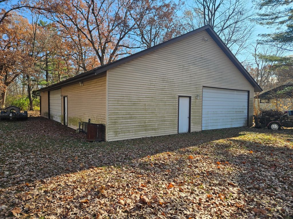 This 3 bedroom home features a split floor plan. Kitchen features a convenient cabinet layout with adjacent dining area. Large living room with plenty of natural light. Large utility room has lot of storage. This home sits on a wooded lot with mature trees. The 60 x 40 pole barn features 2 overhead doors - one on the north side and one on the west side for easy navigation. Pole barn is wired but not hooked up to electric. There is also a 20 x 20 block building for more storage. Plus a childs play house. Plenty of room for a garden or any outdoor activity. Entire yard is fenced! One block to Kankakee River Access. Property is not in the flood plain.