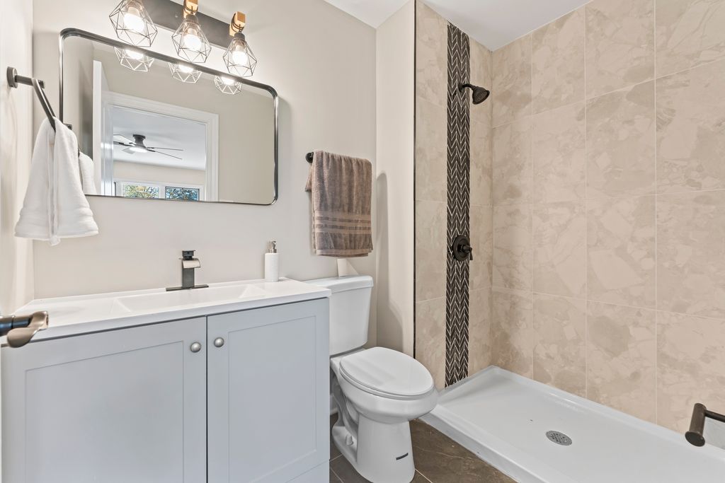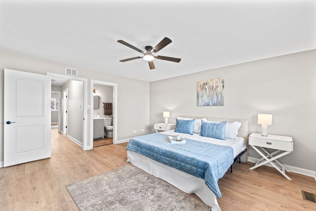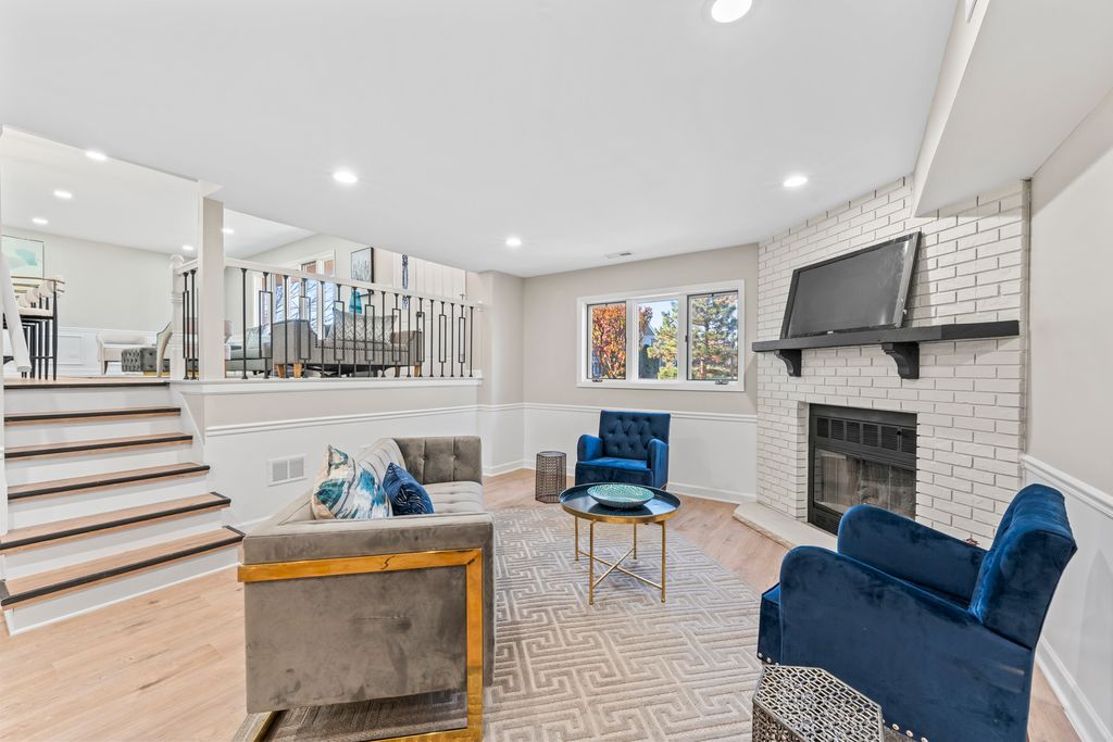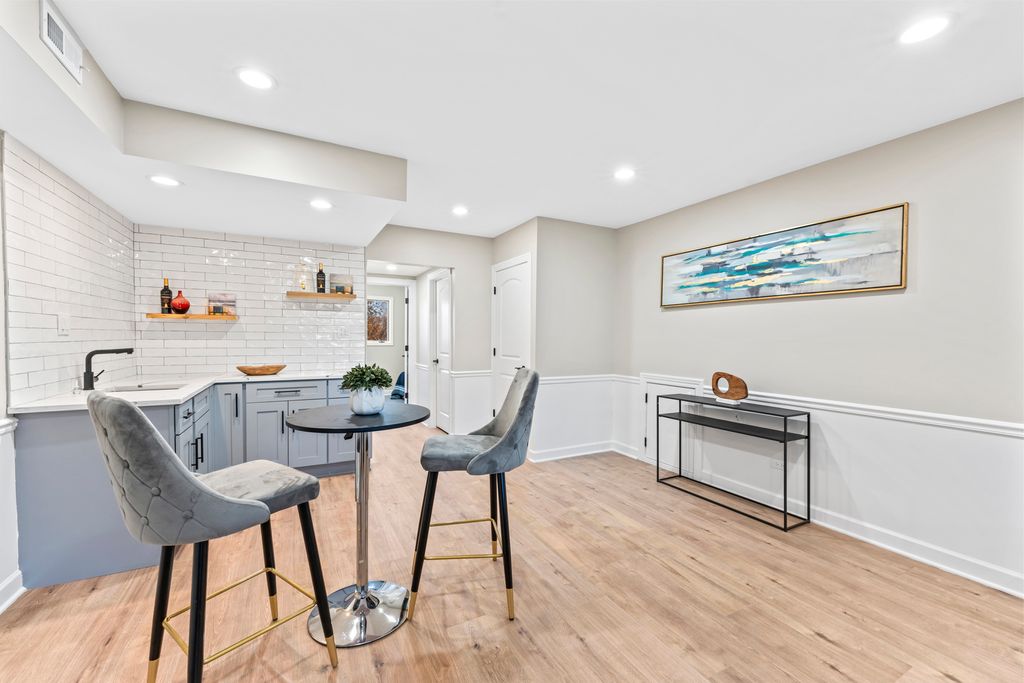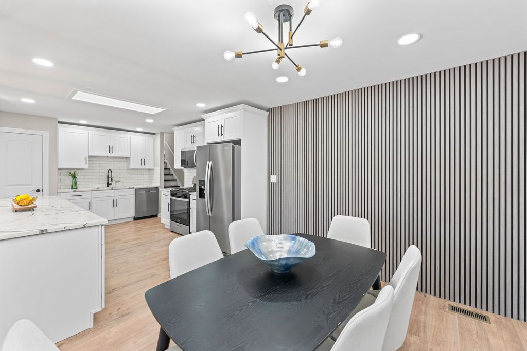 This BREATHTAKING and fully renovated tri-level townhome, nestled on a quiet cul-de-sac in the highly sought-after Eagle Ridge II community, offers the ultimate turn-key experience. Its prime location backs directly onto a serene, large park featuring a scenic walking trail. Every detail has been meticulously upgraded, starting with the installation of gorgeous new flooring throughout all levels and a fresh coat of paint. A crucial element of this top-to-bottom renovation includes all new trim and all new interior doors, upgraded to the modern 2-panel style, providing a clean, contemporary look throughout the entire residence. The open-concept layout highlights the HUGE and stunning new kitchen, designed for both luxury and utility, featuring amazing new white cabinets, a sophisticated white quartz countertop, and elegant tile backsplash, all complemented by a brand new stainless steel appliance package. The kitchen's centerpiece is a massive 113-inch center island with a counter overhang, making it the perfect breakfast bar. Beyond the custom millwork, which includes elegant wainscoting and chair rail, the dining room boasts a stylish accent wall, adding depth and character to the space, and the living area features a very nice and cozy fireplace, perfect for cool evenings. The staircase has been modernized with new rail spindles. The entire electrical system has been modernized with new can lighting, designer light fixtures, and even new electric outlets and switches. The home features three spacious bedrooms, including a luxurious master suite, and two and a half completely brand new, custom-finished bathrooms, plus the added convenience of a laundry closet with a utility sink. For entertainment, the lower level boasts a newly installed wet bar. Storage is plentiful, with generous closet space throughout and the convenience of pull-down stairs in the 2.5-car attached garage for easy attic access. Enjoy low-maintenance living and an unbeatable location just minutes from shopping, dining, the Metra station, and easy access to the interstate. This is a complete, amazing transformation offering true luxury living in the suburbs.