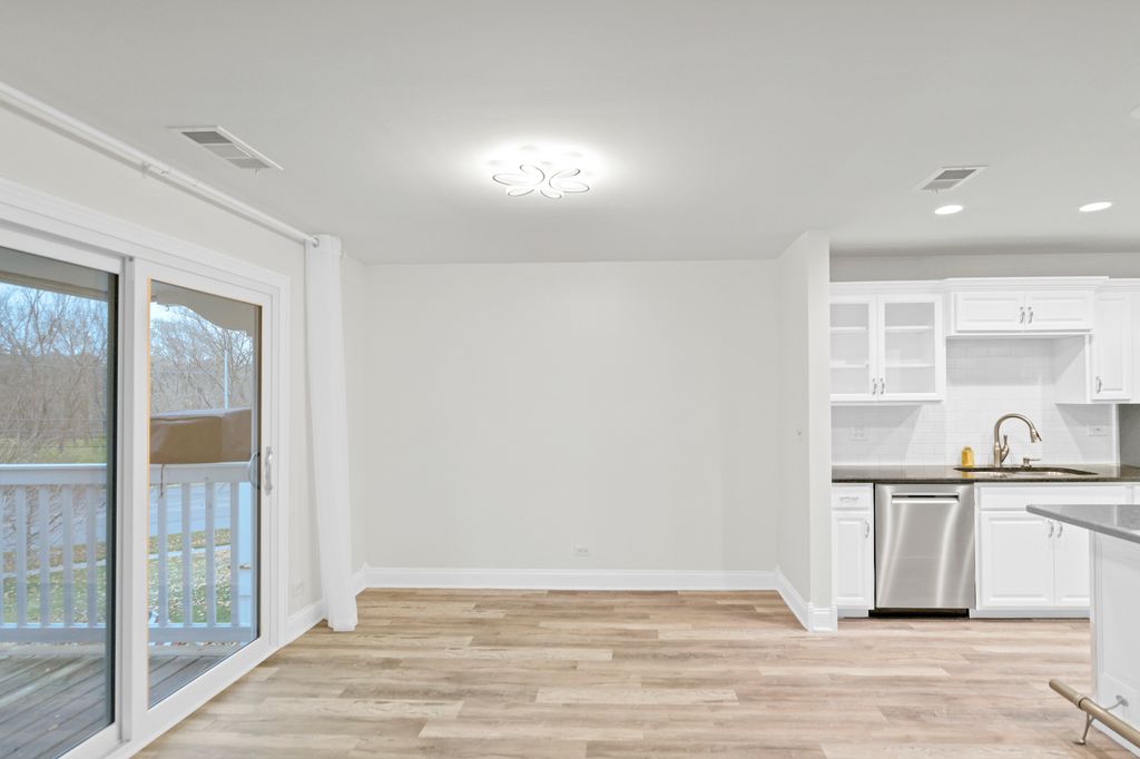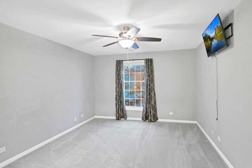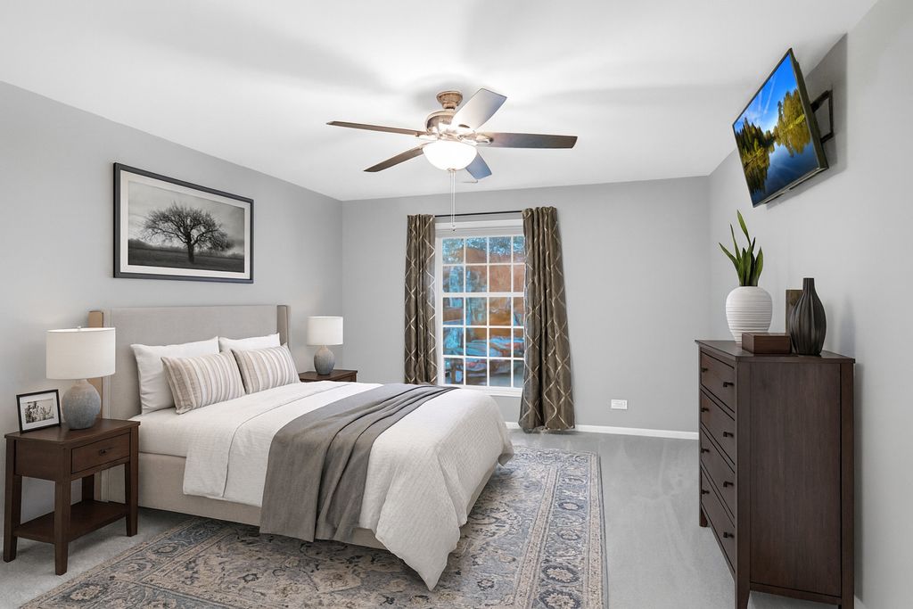 Beautifully updated second-floor 2-bedroom condo tucked on a quiet cul-de-sac in desirable Old Sawmill in Naperville. This home offers an open-concept layout with a spacious living/dining room filled with natural light, built-in cabinets with lighting, and two newer (2024) sliding glass doors leading to the balcony. The newly updated kitchen features modern white cabinetry, granite counters, subway tile backsplash, stainless steel appliances (dishwasher and refrigerator new in 2025), an island/breakfast bar, planning desk, recessed lighting, and a pantry. Enjoy the convenience of in-unit laundry. The primary bedroom includes a walk-in closet and an updated en-suite bath with a custom shower. The second bedroom is perfect as a guest room, home office, or flex space, and is served by the updated full hall bath. Relax on the private balcony (new flooring and rails) overlooking professionally landscaped green space. Ideally located across from the neighborhood pool, near Downtown Naperville, and steps from the West Branch DuPage River Trail-this turnkey condo is truly move-in ready with updates throughout.