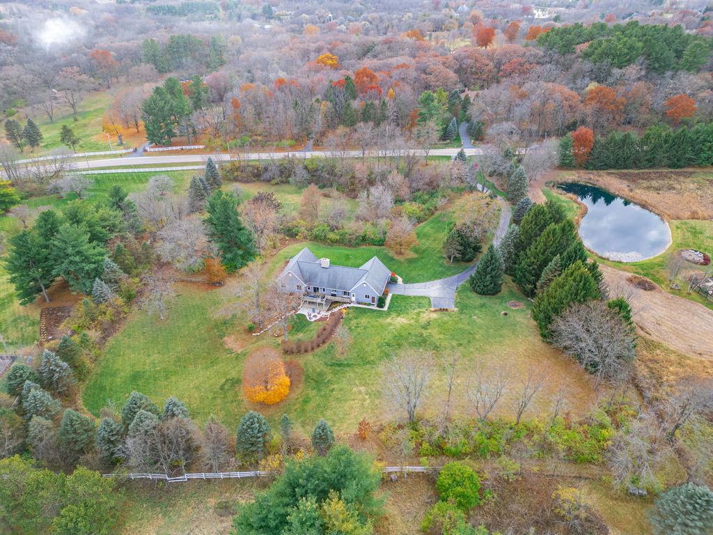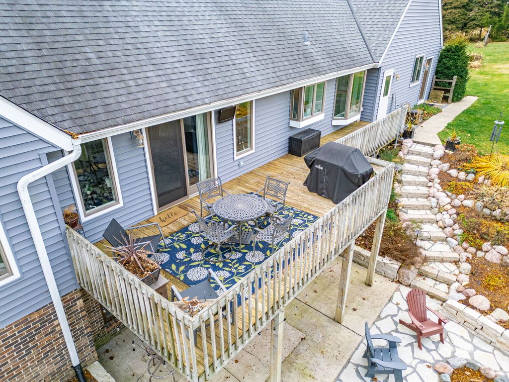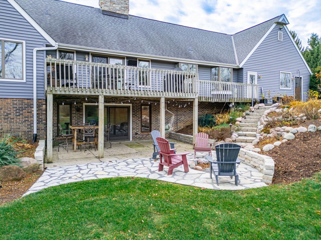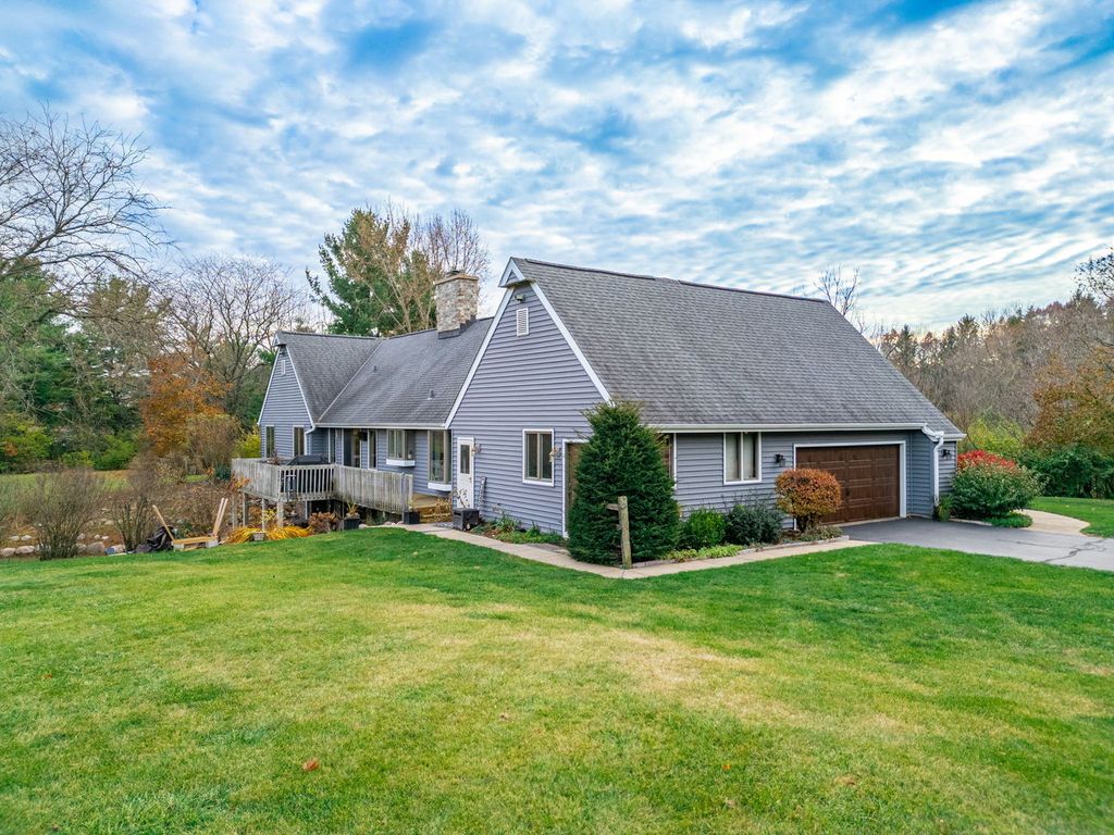 Beautiful, sprawling ranch home set on 5 peaceful acres zoned Agricultural, featuring full walkout exposure! With over 4,000 sq ft of living space across two levels, this home offers abundant room to spread out and enjoy comfortable country living. The inviting Family Room includes a brick fireplace, is open to the Kitchen, and features sliding doors leading to a large deck-perfect for entertaining or taking in the serene views. A spacious first-floor Laundry Room offers exceptional convenience with abundant cabinetry and an exterior door for easy access. The light-filled Kitchen shines with crushed quartz countertops, double ovens, a cooktop, and a generous dinette area overlooking the picturesque yard. Adjacent to the kitchen, the sunken Living Room and Formal Dining Room are lined with large windows that flood the space with natural light. The walkout lower level provides incredible additional living space, including a large family room, kitchenette area, and a second family room currently used as a home office, theater room, or potential 4th bedroom (note the Murphy bed). A full bathroom completes the lower level. The full walkout lower level leads directly to a patio and firepit-ideal for outdoor relaxation and gatherings. A rare blend of acreage, privacy, and spacious living, this property is ready to welcome you home. Located in Belvidere North School District with easy access to main roads, Rockford, and I-90. Plenty of Room for a second garage.