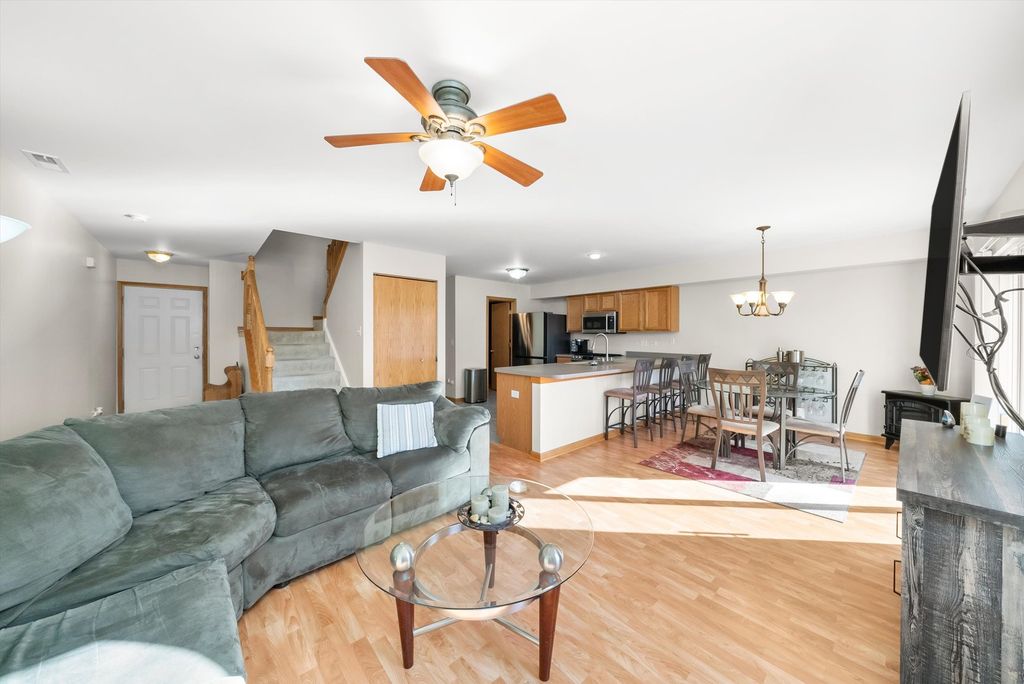 Welcome home to this beautifully maintained 3-bedroom, 2.5-bath townhome located in the highly desirable Leighland Bridge subdivision - with no SSA! From the moment you step inside, you'll appreciate the fresh, modern feel. The open-concept first floor features brand new flooring, a generous kitchen island ideal for gathering, updated appliances, and a clean, refreshed look thanks to a fresh coat of paint. The layout offers excellent space for both everyday living and entertaining. Upstairs, you'll find three spacious bedrooms, including a comfortable primary suite complete with an en suite bath and a walk-in closet. The additional bedrooms are well-sized and versatile for guests, a home office, or a growing family. Practical updates include a newer furnace and AC for peace of mind, along with an attached, heated 2-car garage-perfect for Illinois winters. Step outside to a spacious patio that extends your living space and is ideal for grilling, relaxing, or entertaining friends and family. This home has been thoughtfully cared for and truly will not disappoint!