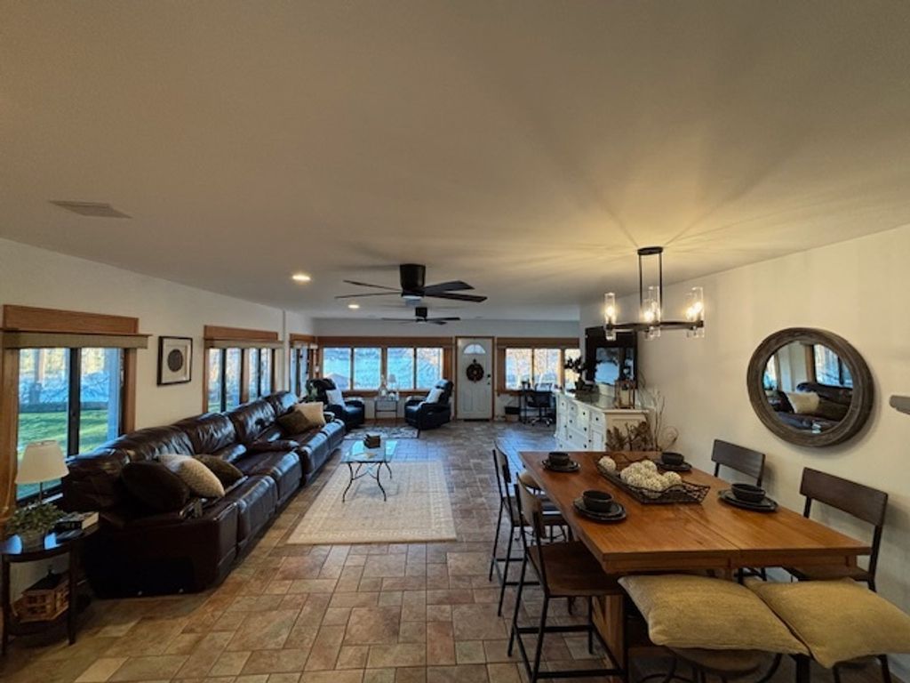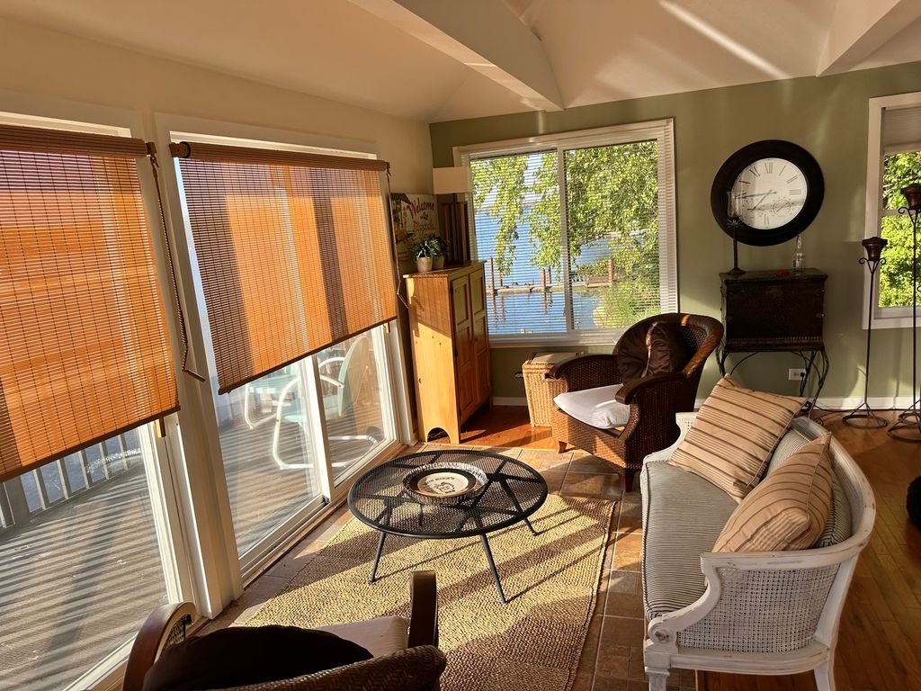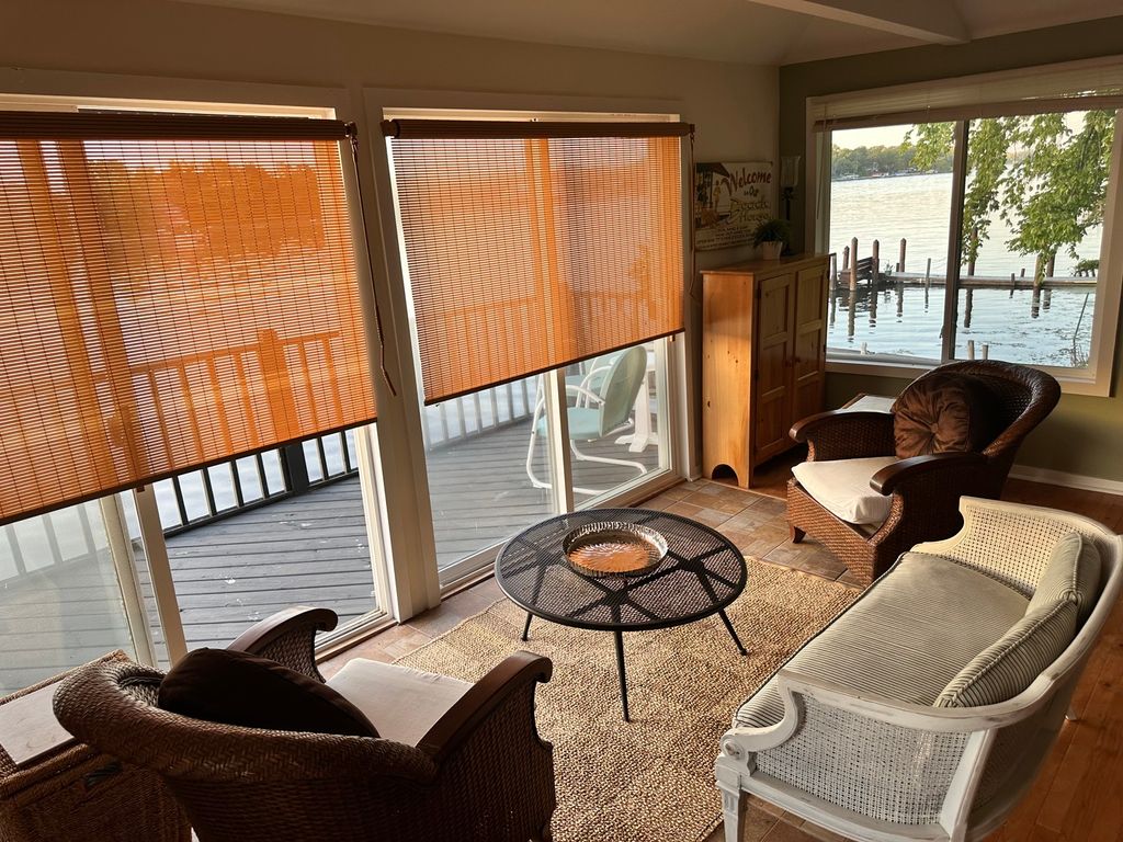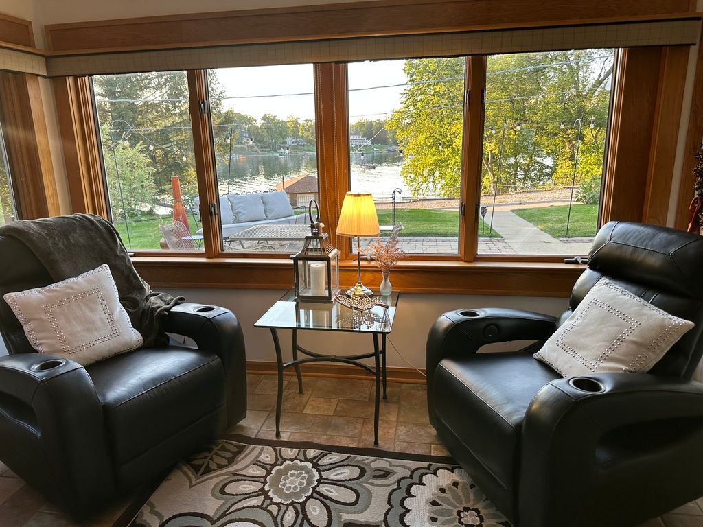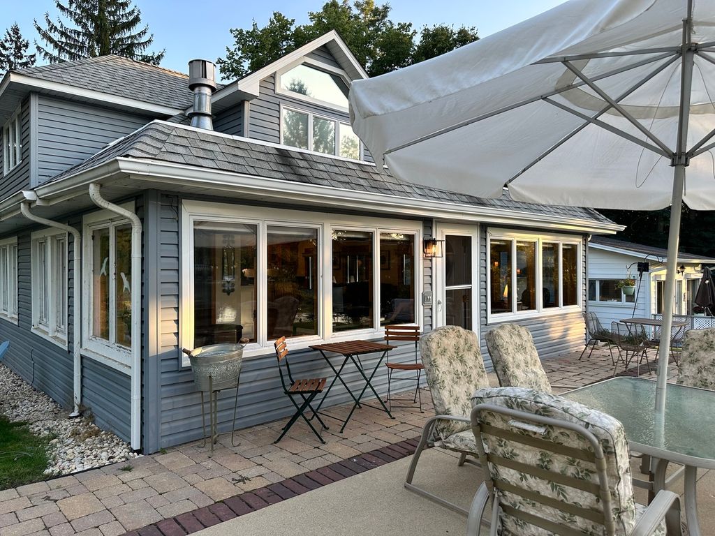 CHAIN-O-LAKES HOME & BOAT HOUSE on the South Eastern shores of one of the premier lakes - Channel Lake. This is a "Fall Special" priced at $475,000. The home sits high on a hill overlooking the southern and western shores of Channel Lake. As you enter the home you will notice the BIG OPEN concept of a great room effect with 3 walls of windows to take in the views. The owners have created within these walls a Dining area with a Wet Bar, living area for large groups, and off to the side is an area for reading around the free standing fireplace. In the kitchen you will find Custom Oak Woodwork, Beautiful cabintry, Granite counter tops, Lots of storage, and a pantry/mudroom with a coffee bar. The Master Bedroom is Unique with 3 skylights, lots of Closet space, a Sitting area, and Views of the Lake. In the house; the flooring on the 1st floor is all ceramic tile and the 2nd floor is all Hardwood. On your way down to the Lake you will find a 60' x 16' (+-) Brick Patio w Planters to take in the Amazing views. That gets us to the BOAT HOUSE. Very rare on the Chain and they won't let you build them anymore. This one is right on the waters edge. The Family Room (boat house) is 26 x 19 with Hardwood and Tile floors. Inside are beamed Vaulted ceilings, Sliders to a 6'ft wide x 36' long Deck on the lake and south side, 1 Fireplace (electric), Ceiling fans, Views, Views, & more Views!! Below there is plenty of storage for your Lake toys. The deeded property is just under a 1/2 acre of Land, however there is a lot more. Included is a 1 car Garage and a large Barn shed. Don't hesitate or you may be too late!