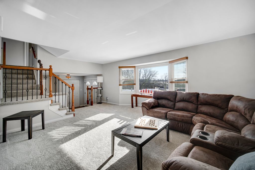 SPACIOUS JAMESTOWN TRI-LEVEL WITH FINISHED SUB-BASEMENT. FRESHLY PAINTED AND NEW CARPETING. FEATURING 1ST FLOOR BEDROOM WHICH COULD ALSO BE USED AS A STUDY. FAMILY ROOM IS ADJACENT TO THE PATIO AREA AND FEATURES DRY BAR WHICH IS PERFECT FOR THOSE SUMMER GARDEN EVENTS. BRIGHT LIVING ROOM AND DINING ROOM AREA WHICH ALLOW YOU TO EXPAND ENTERTAINING SPACE. KITCHEN OFFERS A GREAT WORK PATTERN, WITH HARDWOOD FLOORS AND MAPLE CABINETRY IN A CHERRY FINISH. FULLY APPLIANCED. PRIMARY BEDROOM FEATURES A NEWER BATH. GREAT CLOSET SPACE THROUGHOUT. MAIN FLOOR HAS A STORAGE AREA THAT COULD EASILY BE USED FOR A PANTRY OR EXPANDED TO ADD A SHOWER. BASEMENT AREA FEATURES PLENTY OF SPACE FOR WORK OUT AREA, REC ROOM OR EXTRA TV AREA. HOME WARRANTY INCLUDED.