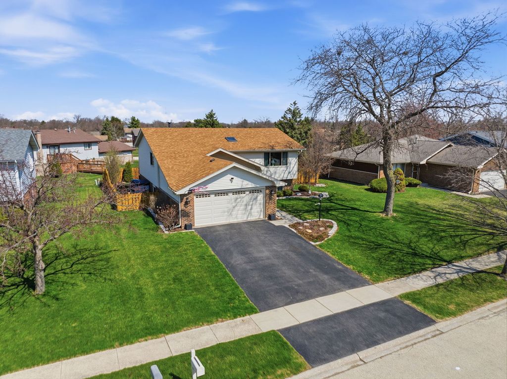 Beautifully updated and move-in ready, this meticulously maintained 4-bedroom, 2 full bath bi-level (Raised Ranch) on an expansive lot offers the perfect blend of modern updates, functional living, and everyday comfort, all set in a quiet, desirable Homer Glen neighborhood. The home welcomes you with spacious, light-filled living areas, where soaring vaulted ceilings and multiple skylights create an open, airy feel throughout the main level. The well-designed layout offers a natural flow between living spaces while maintaining a comfortable separation between entertaining and private areas. At the heart of the home is a stunning, recently updated kitchen featuring white cabinetry, Quartz countertops, a custom tile backsplash, and some brand new (2025) stainless steel appliances. A conveniently located sliding glass door just off the kitchen opens to the outdoor living space, creating an effortless indoor-outdoor connection. Step outside to a truly exceptional backyard retreat, complete with a large deck with awning for shaded comfort, a stamped concrete patio, brick paver fire pit, a hot tub that stays, and beautifully maintained, fully fenced yard. Enhanced by professional landscaping, this outdoor space is ideal for entertaining, relaxing, and enjoying year-round outdoor living. The lower-level family room offers a versatile second living area anchored by a cozy wood-burning fireplace, perfect for gatherings or quiet evenings at home. Four generously sized bedrooms provide flexibility for guest space, home office, or growing households, along with ample storage throughout. Both full bathrooms have been tastefully updated recently with modern finishes, quality tile work, updated fixtures, and new toilets. This home stands out for the quality and scope of its improvements, including a brand new roof with complete tear-off (2025), new soffits, fascia, and gutters, a newer furnace (2023), newer windows throughout, a newer water heater (2022), blown-in insulation for added efficiency, a brand new 100-amp electrical panel (2025), battery back-up on sump pump, a newer garage door, and a recently installed driveway (2023). Additional updates include a newer rear deck, some concrete work in front, and professionally designed landscaping, reflecting true pride of ownership throughout. Plenty of additional storage located inside and outside. Ideally located near parks, shopping, and major highways, this property offers both convenience and a peaceful setting. A truly turnkey opportunity-nothing to do but move in and enjoy-combining quality updates, thoughtful improvements, and lasting value. Schedule your private showing today to experience everything this home has to offer!