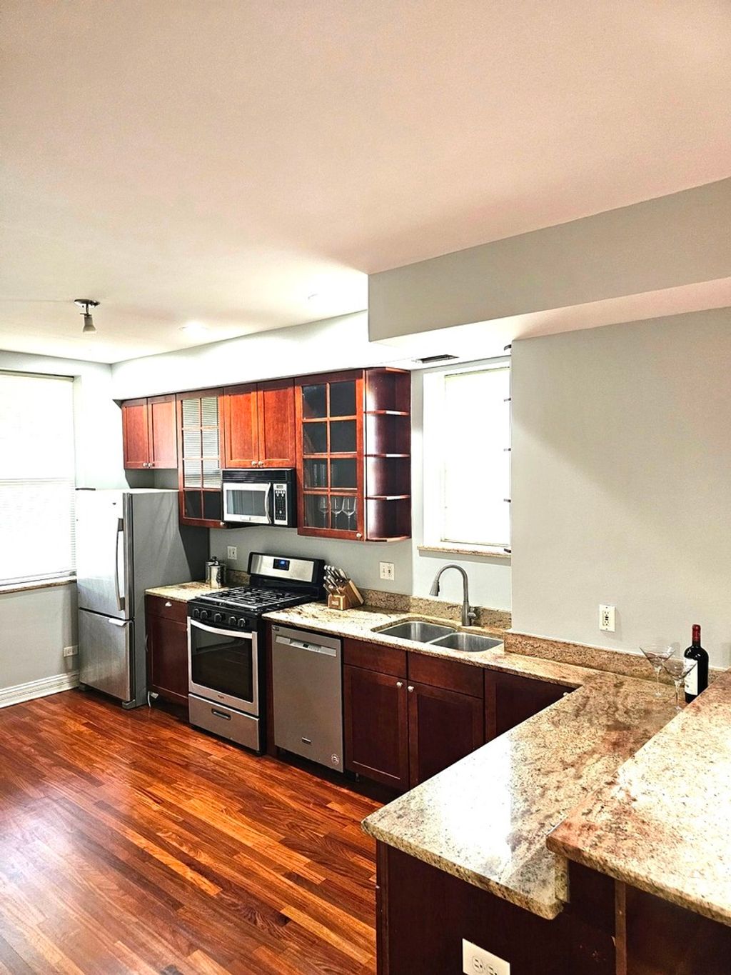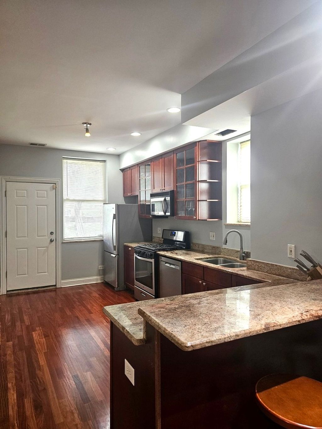 Bright and spacious elevated first floor 3 bedroom, 2 bath condo that features lovely living room with beautifully refinished hardwood floors, custom colors & woodwork thru-out, fireplace and adjacent nook area for sunroom or office. 3 nice size bedrooms, master bedroom with full marble bathroom with jacuzzi tub and walk-in closet. Gorgeous kitchen with lots of custom Brazilian cherrywood cabinets, granite countertops, breakfast bar, stainless steel appliances and dining area. 2nd full ceramic bathroom. In laundry unit with stackable washer and dryer. One assigned rear parking space included. Located just minutes from the Obama Presidential Library, University of Chicago, Museum of Science and Industry, Lake Shore Drive with lakefront trails and easy access for commuting into downtown, Jackson Park where golf lovers can enjoy the historic 18-hole golf course and much more. Close to transportation, shopping and dining. Call today for your appointment.