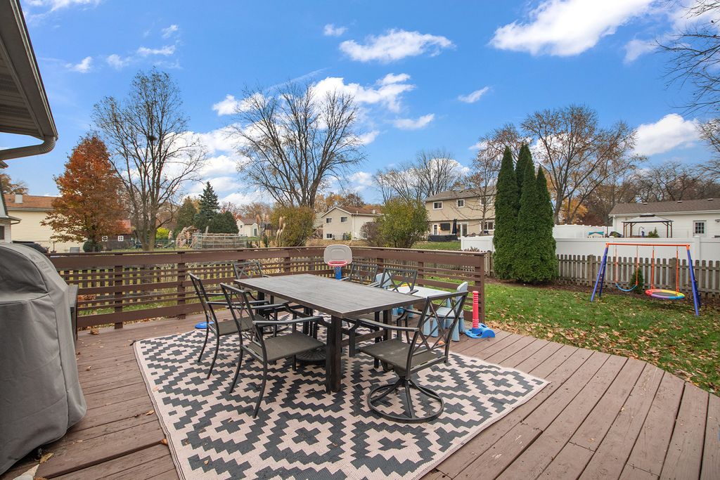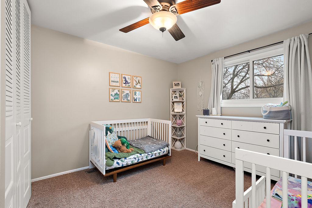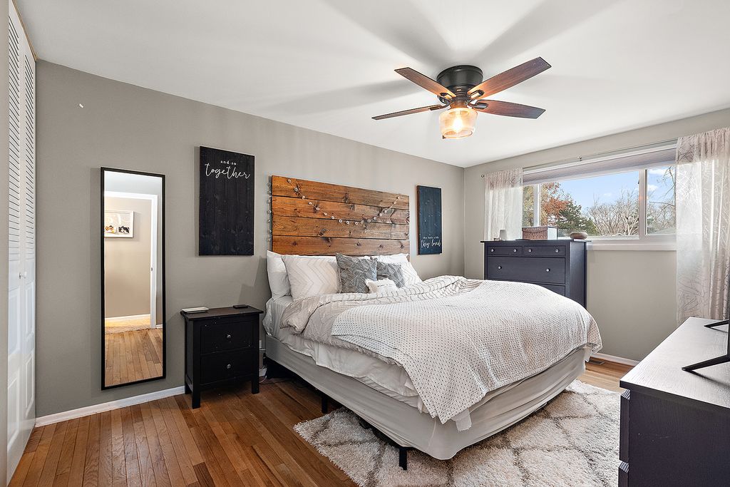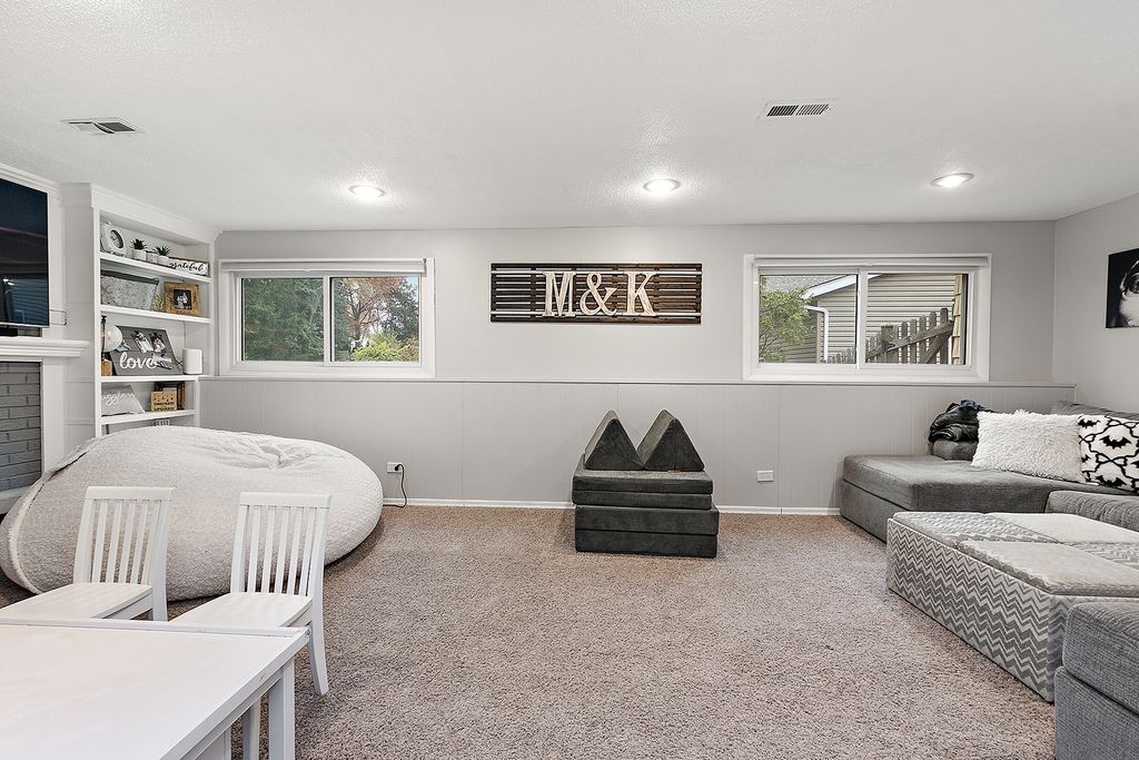 Rare opportunity in Briarcliffe South! This beautifully refreshed home features modern grey tones, gleaming hardwood floors, and an inviting open layout. The updated kitchen showcases custom 42" cabinetry, under-cabinet lighting, granite countertops with a breakfast bar, and sleek stainless-style appliances. Sun-filled living and dining areas overlook a spacious gallery foyer accented with custom shiplap. A generously sized family room offers a cozy gas fireplace and built-in shelving. Upstairs, original hardwood floors lie beneath the carpet, and the bright primary bedroom features exposed wood flooring and access to a shared en-suite bath. Both bathrooms have been tastefully updated, with the upper bath enhanced by a skylight. The large backyard is fully fenced with newer cedar fencing and includes a convenient storage shed. Recent updates include: sewer line replacement (2025), bathroom renovations (2017), roof (2012), AC (2011). Located in a quiet neighborhood, this home offers the ideal South Wheaton lifestyle-close to parks, highways, shopping, and top-rated schools. Don't miss this one!