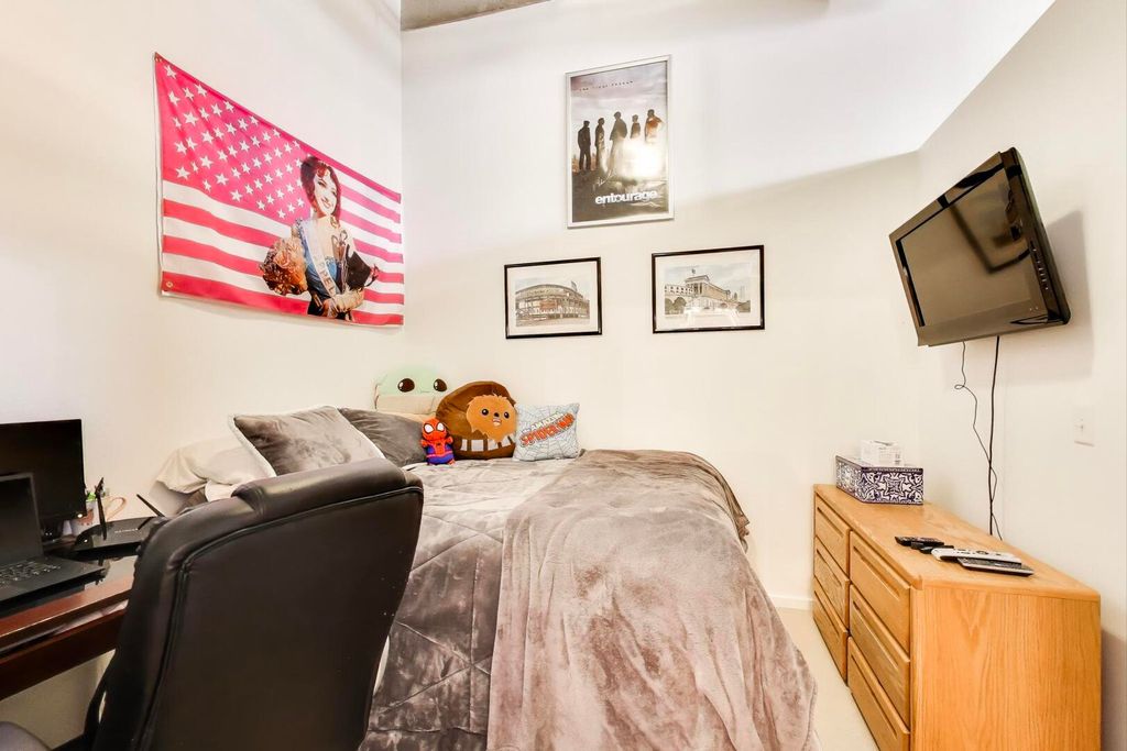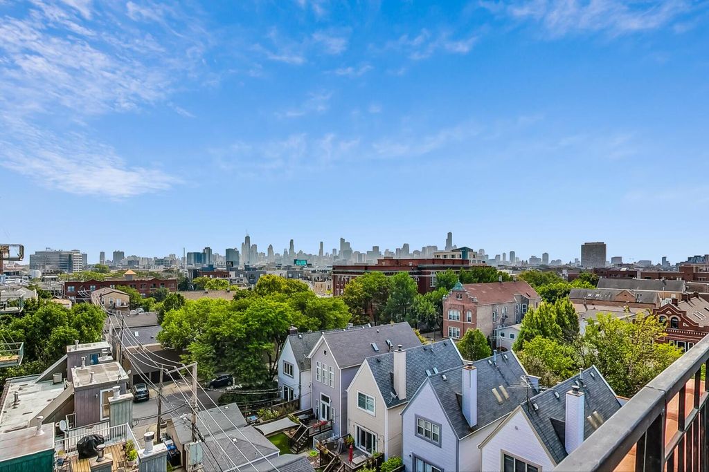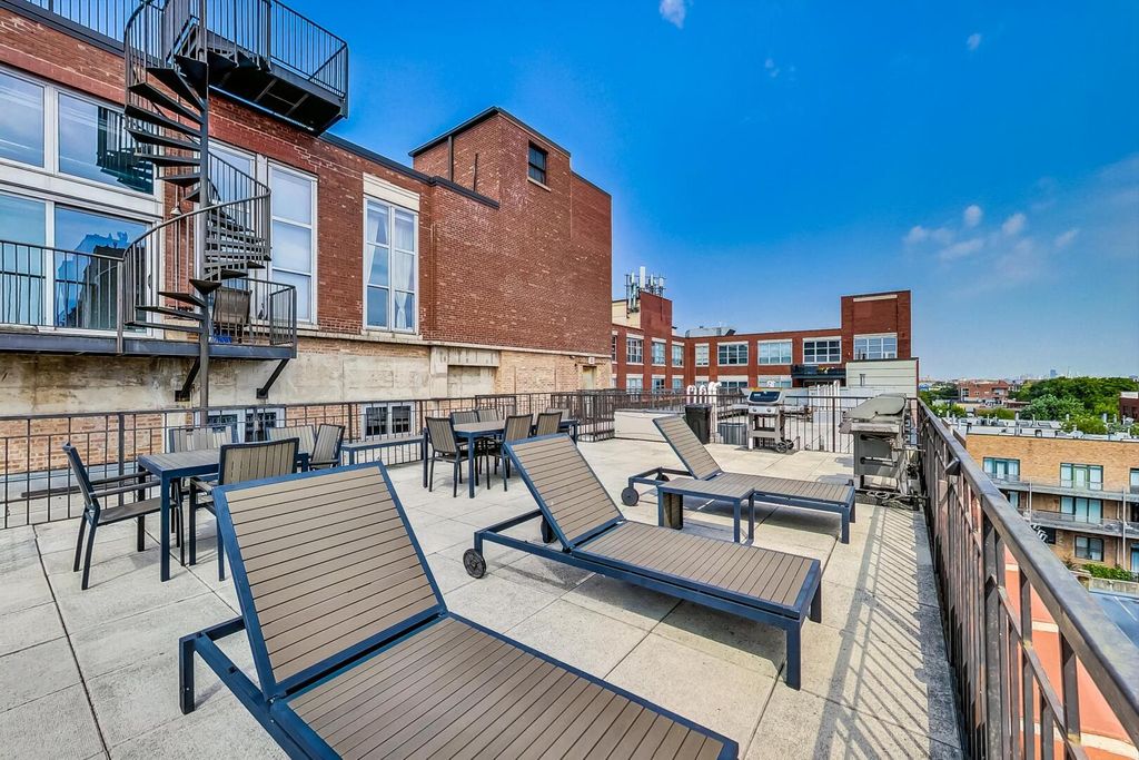 Step into this striking concrete-loft home where soaring 13'+ ceilings, oversized windows, and courtyard-facing views combine to deliver incredible natural light in Bucktown. The expansive open-concept layout offers effortless living and entertaining with defined living, dining, and work-from-home zones. The unit features hardwood floors throughout, a spacious kitchen with granite counters, maple cabinetry, and stainless steel appliances, plus a true primary suite with dual closets and an oversized bath with separate shower and soaking tub. A fully enclosed second bedroom and a second full bath make the home ideal for roommates, guests, or a dedicated office. Residents enjoy a full amenity package including a fitness center, party room, landscaped courtyard, sundeck, and secure lobby with Amazon package lockers. Monthly assessments cover parking, cable, and high-speed internet, providing exceptional value. Located at the entrance of the 606 Trail and steps to Walsh Park, this home places you in the heart of Bucktown/Wicker Park's most vibrant pocket-moments to restaurants, bars, boutiques, transit, and everything that makes the neighborhood one of the most desired places to live in Chicago. One deeded outdoor parking space is included in price.