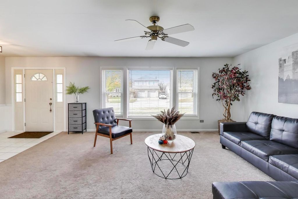Rarely available and impeccably maintained, this charming three-step ranch offers the perfect blend of comfort, space, and modern updates. This 3-bedroom, 2-bath home welcomes you with a large, light-filled living room and a formal dining room ideal for gatherings. The beautifully updated kitchen (2022) features stainless steel appliances and sleek new countertops, making meal prep a joy. The spacious primary suite includes a private bath and a walk-in closet. Need even more room? The expansive unfinished basement provides endless possibilities-create a home gym, kids' play area, workshop, or hobby space. Additional storage is easy with the large crawl space. Step outside to your own private retreat: an oversized backyard complete with a heated pool, paver brick patio, and full privacy fence-perfect for entertaining or relaxing. Energy-efficient solar panels installed in 2021. Conveniently located near highways, shopping, parks, and schools, this home offers both comfort and accessibility. Property is being sold As-Is.