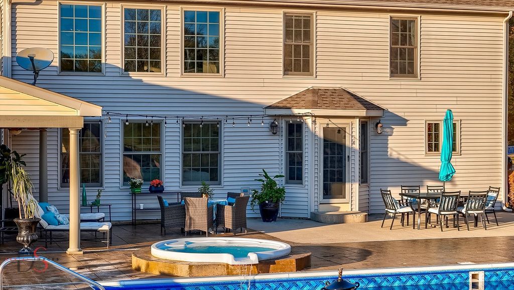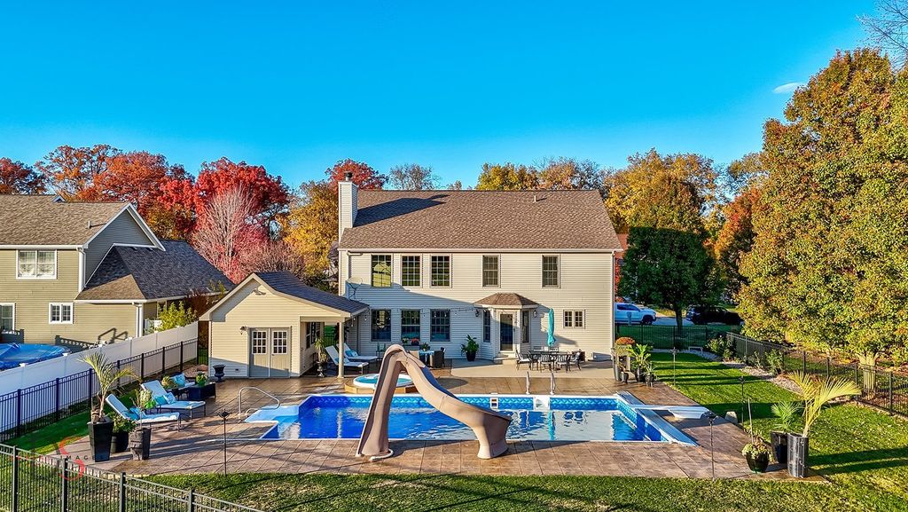 This home was built for people who like to live well and gather often. With more than 4,000 square feet of finished living space-including a finished basement designed for fun-it offers room to spread out without ever feeling disconnected. One of the first things you notice is the living room: tall, airy ceilings that pull in the daylight and a fireplace that anchors the entire space. The kitchen serves as the hub of the home, with an island made for conversations, morning coffee, or last-minute homework help. There's space for a table, a walk-in pantry for real storage, plus a separate dining room for when the moment calls for something a little more formal. An office on the main floor keeps work close but not in the way. Upstairs, the primary suite feels genuinely private-complete with its own full bath and a large walk-in closet that doesn't require compromise. Three additional bedrooms share the level, along with a laundry hookup so baskets don't have to travel far. The finished basement is another world of its own: a wet bar for game days, a family room that's perfect for movie nights or a laid-back hangout, an exercise area, generous storage, and even a set of stairs that leads directly to the garage-one of those thoughtful touches you don't realize you need until you have it. Outside is where the home really shows its personality. A wide stamped-concrete patio stretches toward the pool, complete with a slide and a spa. It's the kind of backyard that becomes the default gathering place-summer birthdays, late-evening swims, quiet Sunday mornings. The mechanicals have been responsibly updated: tankless water heater, a furnace just a year old, air conditioner replaced this past summer, and roof and siding installed seven years ago. Everything about this home is designed to make everyday life comfortable and hosting effortless. It's the rare place that works as well on a quiet weeknight as it does with a house full of guests.