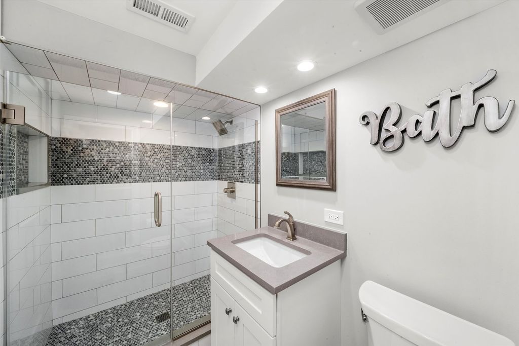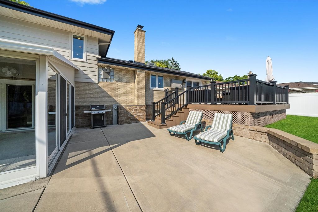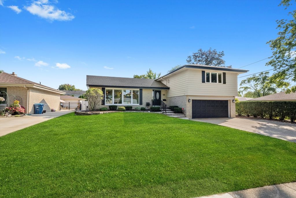 Beautifully updated MacDougall Split Level featuring 3 bedrooms and 3 full baths plus an additional half bath on the main level, located in the highly sought-after Elm Estates neighborhood. This home was completely remodeled in 2019 with all new plumbing, electrical with buried 200-amp service, all new flooring throughout, renovated and redesigned open-concept kitchen with KitchenAid stainless steel appliances, large quartz island, and custom cabinetry flowing seamlessly into the dining and family rooms. Patio doors lead to an expansive 18x16 Timber Tech deck with LED-lit railings and a concrete patio, perfect for outdoor entertaining. The walkout lower-level family room showcases an elegant stone fireplace and a tastefully designed bar with ample cabinets and a beverage fridge, opening to a fully enclosed 3-season room with new screens and sliding patio doors. The second-floor features three large bedrooms including a luxurious primary suite with walk-in closet and private bath featuring a custom glass shower, plus an additional full hall bath with double vanity, tub, and attached glass shower doors. The fully finished basement offers additional living space, a full bath with custom glass shower, laundry room, and storage area. Extensive upgrades include all new Andersen Fibrex windows, patio and sliding doors, Zoeller Aquanaut back-up sump system, dry well with storm sewer connection, new vinyl fence, custom closet organizers, attic fans, Tuff 8x10 outdoor shed, and replacement of the sanitary sewer line from main to house (2019).Polyurea floor coating in the garage and expanded paver brick driveway Recent updates include a new Trane 3.5-ton AC with condenser (2021), completely new roof with architectural HDZ 30-year shingles (2024), and new chimney caps. Total Finished Sq Ft: 3277(Incl Bsmt) Prime location within walking distance to Jackson and Bryan, schools. This home is truly move-in ready and offers exceptional quality, design, and convenience a must see to appreciate! **** Please note: Seller is an Illinois Licensed Real Estate Broker***Broker Owned Real Estate****