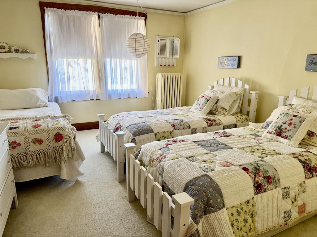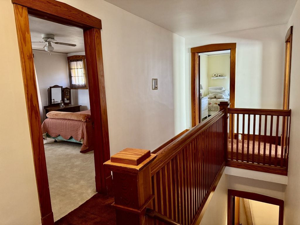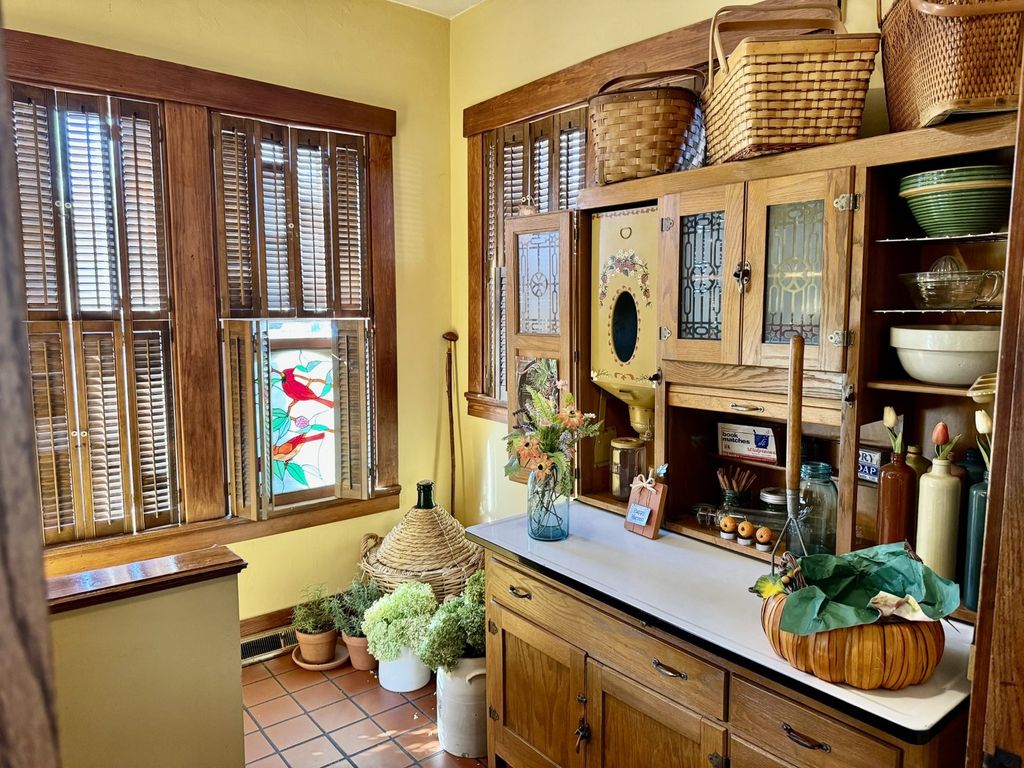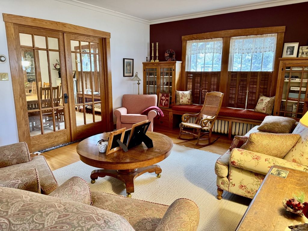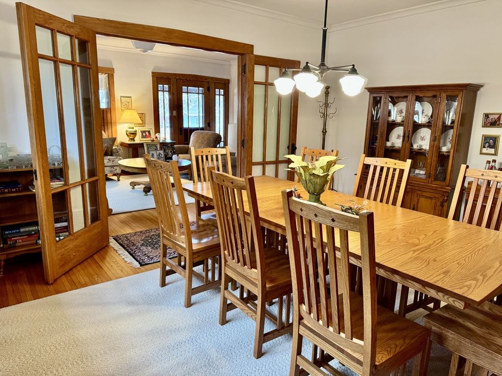 Character and charm shine throughout this classic brick beauty, a spacious four-bedroom, two-bath home that blends timeless detail with modern comfort. From the moment you step onto the welcoming front porch, you'll notice the attention to detail-immaculate original wood trim, gleaming hardwood floors, and thoughtfully crafted built-ins that give the home its warm, inviting feel. The large living room opens to a formal dining room through elegant French doors, and the built-in cabinet in the dining area adds both style and functionality. The kitchen offers abundant cabinet space and comes complete with a stove, refrigerator, and dishwasher. A nearby pantry closet with a charming boot bench and decorative antique sink adds even more character. The main level includes a bedroom as well as an additional room that could serve perfectly as an office, den, or even a fifth bedroom. Upstairs, you'll find three generous bedrooms with ample closets, classic built-ins, and plenty of storage. Outside, the property sits on a desirable corner lot and includes a three-car detached garage. Major updates provide peace of mind, with the furnace and AC just four years old and the roof replaced in October of 2022. This lovingly maintained home is truly a rare find, offering both space and historic charm in every room.
