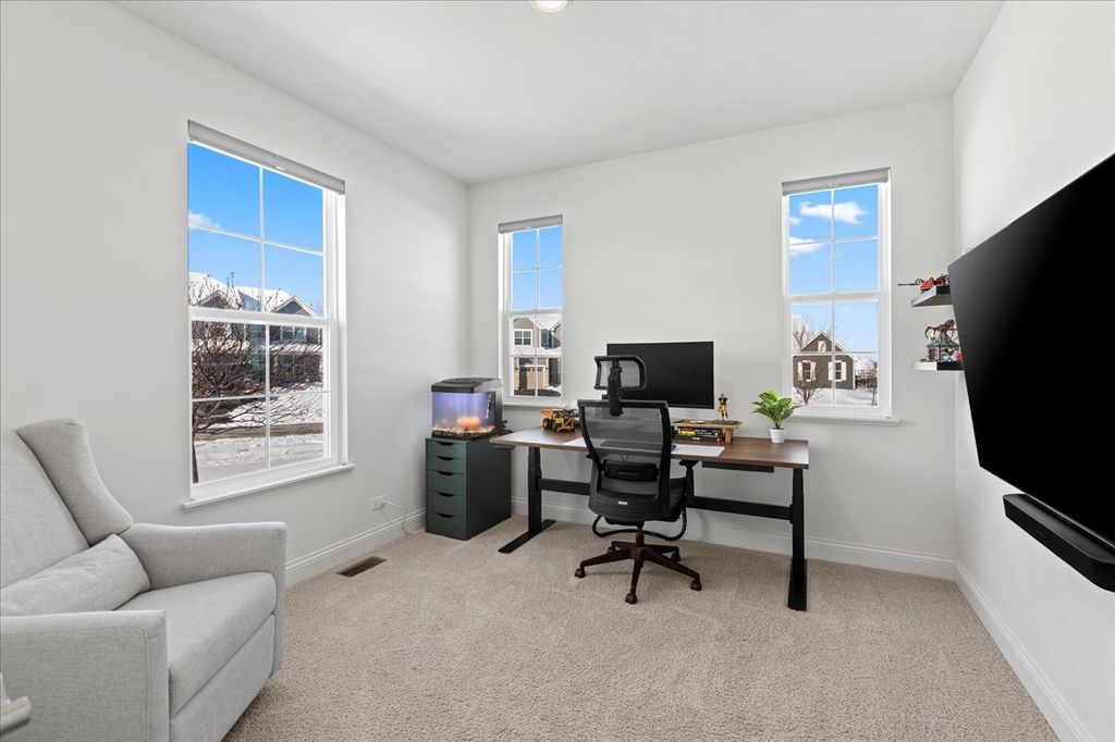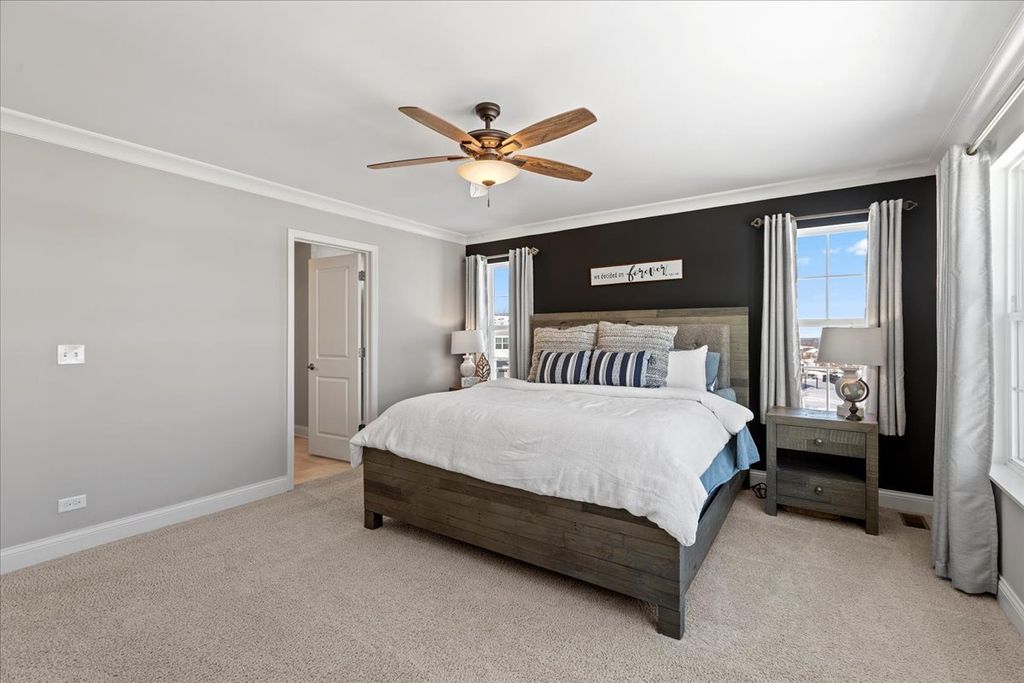 WARM & WELCOMING LENNAR BUILT CHAGALL 2-story model, where modern design meets smart, effortless living. This impressive home offers 3 generous bedrooms + a convertible loft (potential 4th bedroom w/closet already builtin), a first-floor study, 2.5 baths, and a 2-car garage. At the center of the home is the stunning chef's kitchen, featuring a walk-in pantry, a spacious island with seating, and a bright breakfast/dining area-perfect for everyday living and entertaining. Owner's have added a $25K trex deck, board & batten designer wall finishes, crown molding, window blinds, ceiling fans , luxury vinyl plank flooring and closet systems in pantry. One of the largest lots with over 15,000SF, perfect for your summer fun! Fencing allowed! This home truly stands out as part of the collection, offering quartz countertops, upgraded cabinetry and flooring, stainless steel appliances, and 9-foot ceilings on the first floor. Unfinished basement already set up with a bath rough-in and waiting for the next owner to finish. Enjoy added convenience with Wi-Fi certification and Smart Home Automation technology throughout. Ideally located just off Route 31, about a half mile north of Route 176, you'll enjoy quick access to restaurants, shopping, healthcare, Metra stations and beautiful local parks. Situated within the Crystal Lake Park District, you'll be close to Three Oaks Recreation Area, Crystal Lake Main Beach, Crystal Lake Library and the highly rated Prairie Ridge School. Don't miss your opportunity to own this thoughtfully designed, move-in-ready home-where style, convenience, and technology come together perfectly.