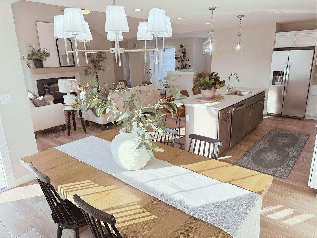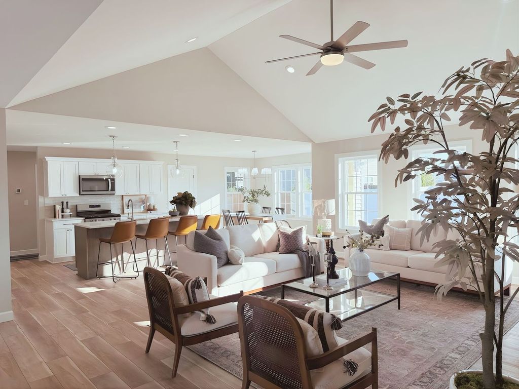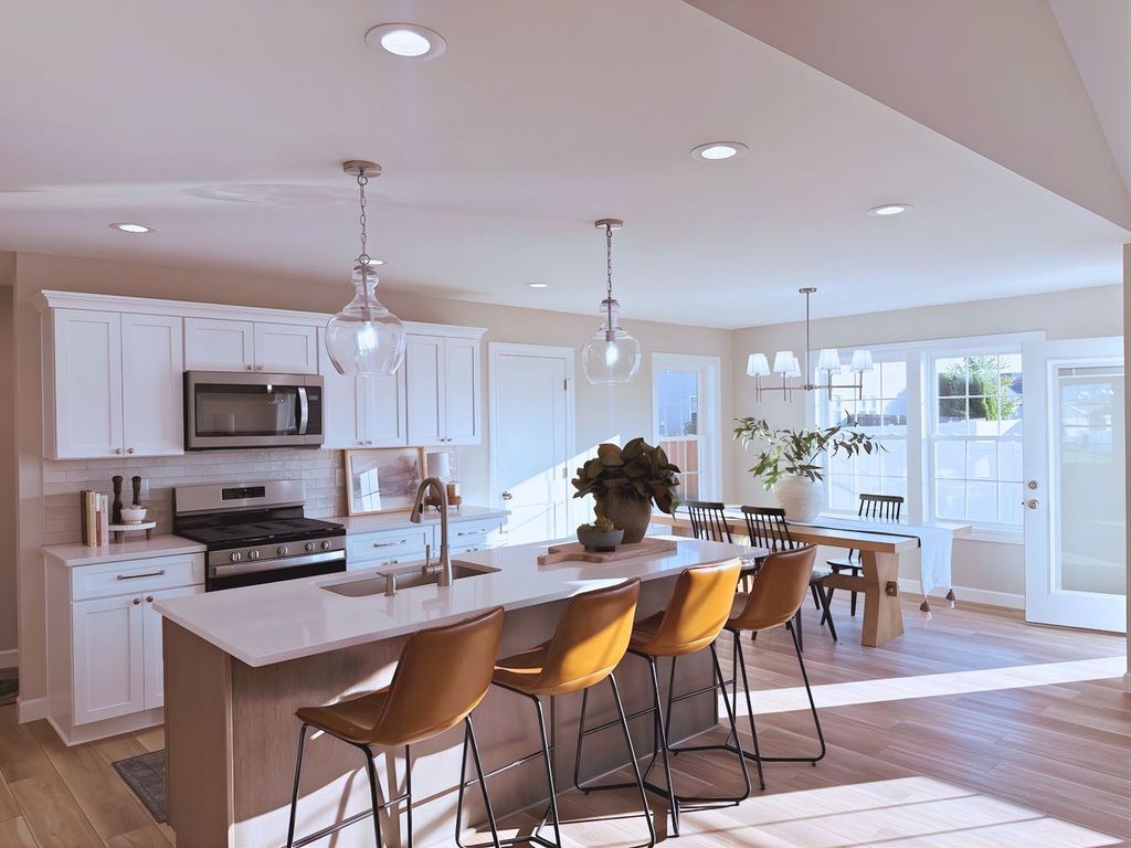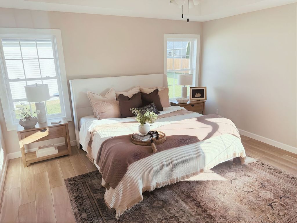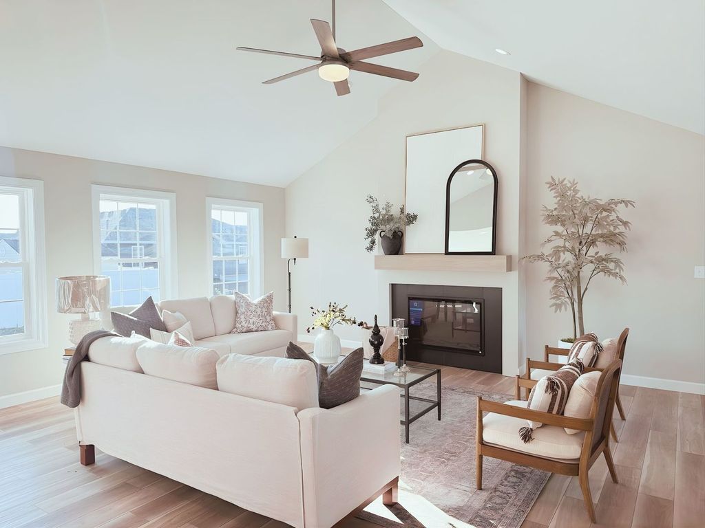 This NEW CONSTRUCTION XL Evermore plan offers 1,885 square feet of thoughtfully designed living space with 3 bedrooms, 2 bathrooms, and a 3-car garage. Built by a trusted local builder with over 30 years of experience, this home is crafted with quality materials throughout. Inside, you'll find wide luxury plank floors throughout the entire main level, a custom fireplace, and an open layout that's perfect for everyday living and entertaining. The kitchen features quartz countertops, Whirlpool kitchen appliances, and plenty of storage. The split-bedroom design places the primary suite on one side of the home for privacy, with two guest bedrooms and a full bath on the other. Most importantly, there are TONS OF CLOSETS to ensure room for everything. The open U-shaped staircase leads to a full basement, already roughed in for a future bathroom, giving you the option to expand your living space. Outside, the home has a roomy back patio. The yard will be fully sodded lot for a finished look from day one. This home is staged for marketing purposes. Furniture and decor are not included in the sale.