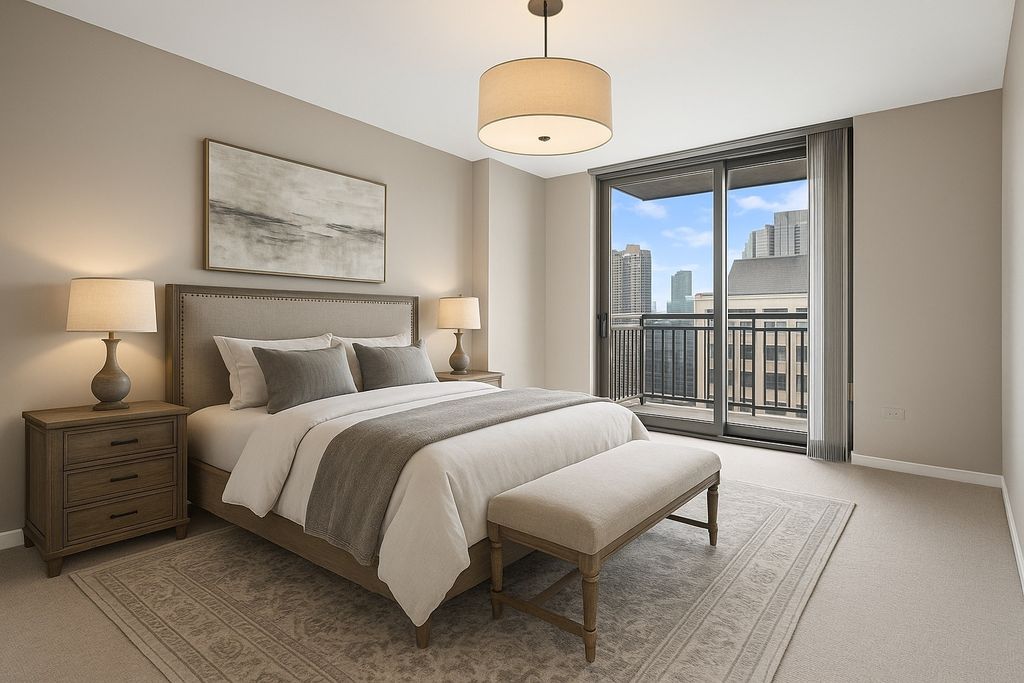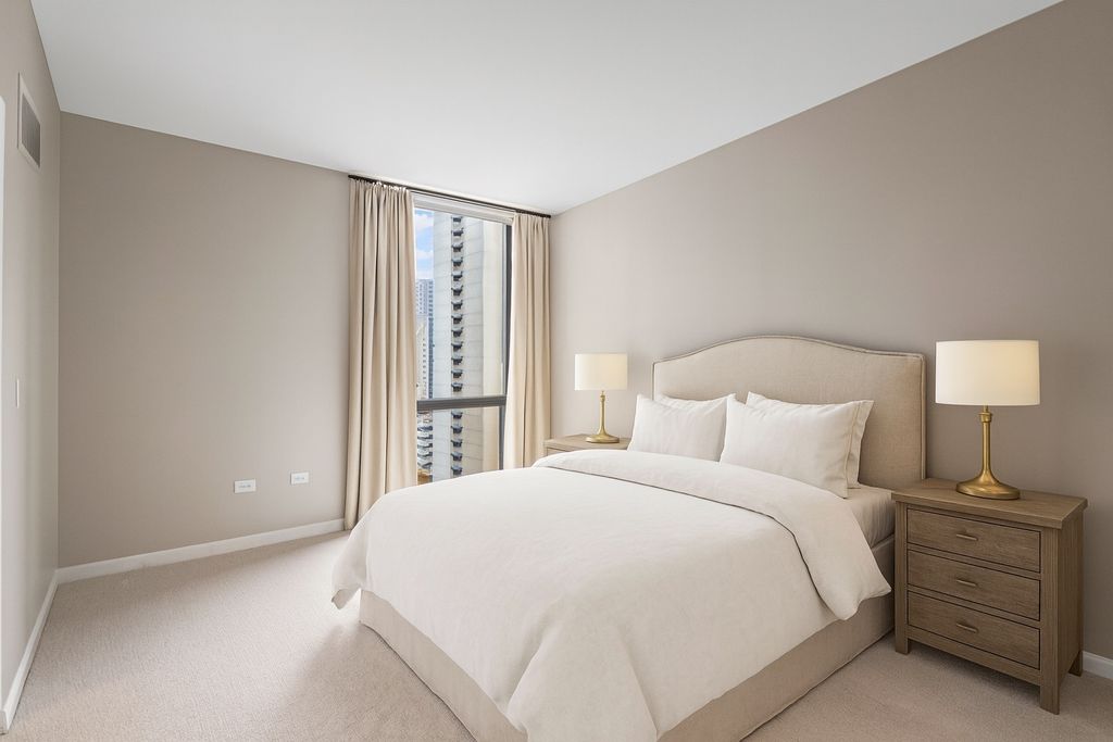 Stunning 3-Bed, 2-Bath Corner Condo with Panoramic City Views! Perched on the 17th floor, this spacious and freshly updated residence offers breathtaking north and east skyline views from every room. The home has been completely repainted and features brand-new carpet in the primary and second bedrooms for a crisp, move-in-ready feel. The modern kitchen is appointed with stainless steel appliances, sleek Scavolini cabinetry, and a convenient additional pantry area. An expansive private wrap-around balcony extends your living space outdoors-perfect for morning coffee or unwinding with Chicago's cityscape as your backdrop. The generous primary suite includes a walk-in organized closet plus a secondary closet, its own private balcony, and a luxurious en-suite bath with a separate Jacuzzi tub, steam shower, double vanity and large linen closet. Abundant closets throughout the home ensure effortless organization. Additional highlights include in-unit laundry, dedicated storage, and a prime parking space (#24) located on the first parking level (garage parking included) - pet friendly building. Rentals not allowed at present time - the building is at their cap. This exceptionally well-run building offers on-site management, 24-hour door staff, a newer fitness center, and a beautifully renovated guest suite. Ideally located, you're just steps from top restaurants, shopping, grocery stores, and public transportation. Don't miss the opportunity to make this remarkable residence your next home!