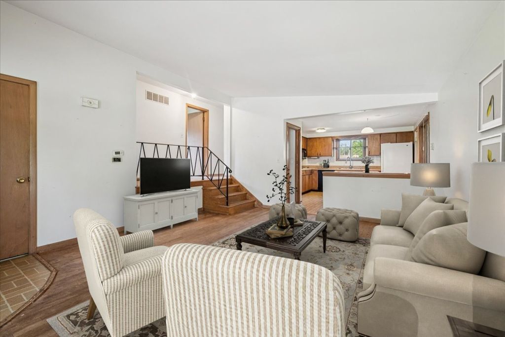 This is a perfect fixer-upper on a 0.4-acre lot (90' x 180') with mature trees. Bring this classic mid-century modern split-level home back to life with your vision and updates. It features volume ceilings, hardwood floors, a family room with a walkout to a spacious backyard, and an unfinished basement that offers extra storage or can be finished for additional recreational or living space. Newer homes in this neighborhood are selling between $1M and $1.85M, with other custom homes built at even higher price points, indicating significant upside potential for this prime location. Ideally located within District 220 School District and walking distance to the award-winning Grove Avenue School, village shopping, restaurants, parks, and the Metra train station. The property is sold "as is." Architectural plans are available for purchase for a new home design. (note rendering in listing). The plan features a four-bedroom home with a dedicated study on the main level and 3.1 bathrooms. The total estimated square footage is approximately 4,400 SF, with 1,800 SF on the main level and 1,600 SF on the second level, plus an unfinished basement.
