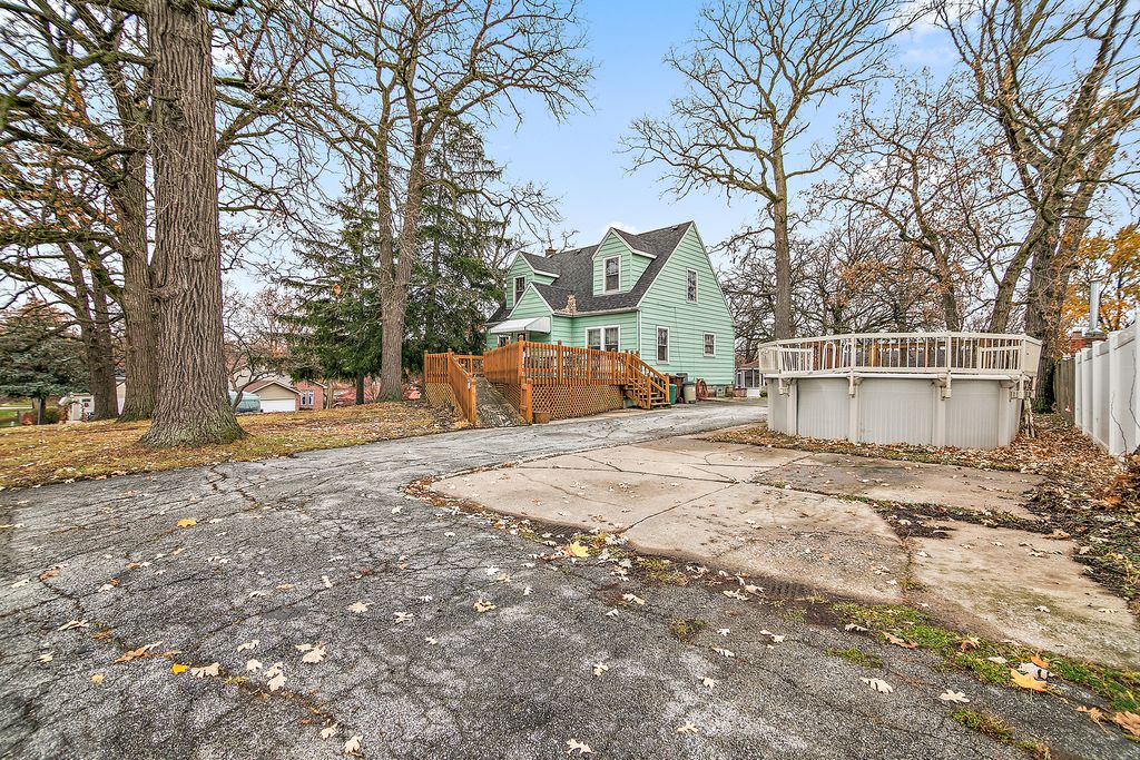 Imagine bringing this charming Cape Cod back to life as a Vintage-Modern luxury home! Situated on a spacious double corner lot (.308 Acre), this property offers incredible potential. Step onto the expansive front deck and into a home filled with character, including lovely original hardwood floors throughout. The main level features a bright living room, separate dining room, a bedroom, a full bathroom with a walk-in tile-surround shower, and a vintage kitchen. Upstairs offers two nicely sized bedrooms-one with a full cedar-walled walk-in closet-and an additional full bathroom with a tile-surround stand-up shower. A full unfinished basement provides ample opportunity for future expansion. Updates include a hot water heater (2021). A large driveway accommodates 5-7 vehicles. Estate Sale-Strictly Sold AS IS. Conventional or Cash financing only. Taxes reflect Homeowner, Senior, and Senior Freeze exemptions. Bring your vision and craftsmanship-this home is ready to be revived! Tons of potential!