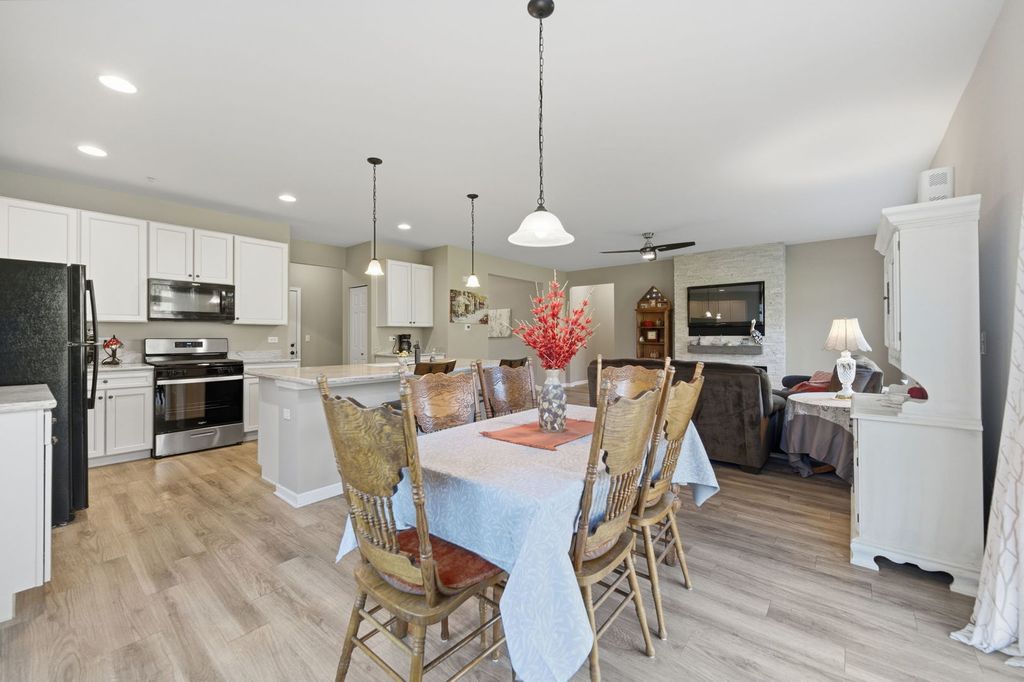 Experience easy, elevated living in this stunning ranch-style home located in a desirable 55+ community on a premium lot with peaceful nature views. Thoughtfully upgraded throughout, this home showcases the features today's buyers love-beautiful quartz countertops, modern LVP flooring, and a custom fireplace that adds warmth and style to the open concept layout. A wide and welcoming entryway leads you into the heart of the home where the living room, dining area, and kitchen flow effortlessly together, perfect for everyday living and entertaining. The showstopper? A gorgeous oversized island you'll absolutely fall in love with-ideal for gathering, prepping, or enjoying your morning coffee. The spacious primary suite offers comfort and convenience with elevated dual sinks and a generous walk-in closet. The second bedroom and third bedroom/flex room share a full bath, providing the perfect setup for guests, hobbies, or a home office. A 2-car garage with built-in storage adds even more functionality, while the premium lot location ensures privacy and tranquil views year-round. Beautifully maintained and move-in ready-this is the one you've been waiting for! You Deserve This!
