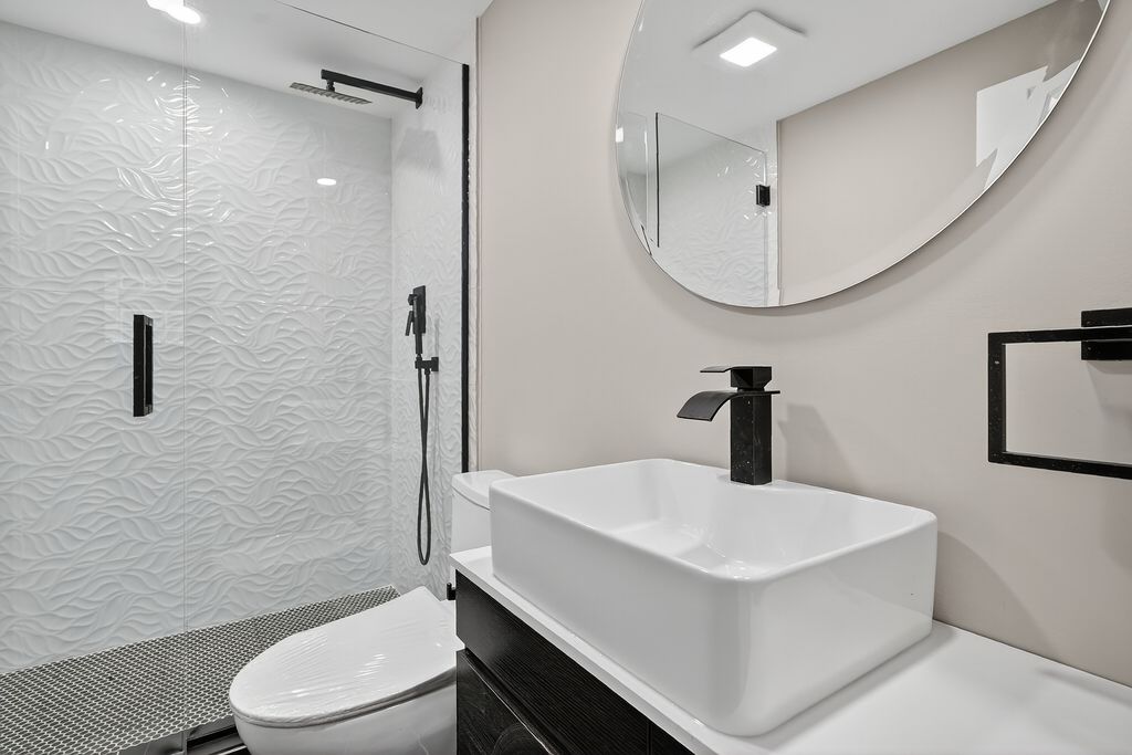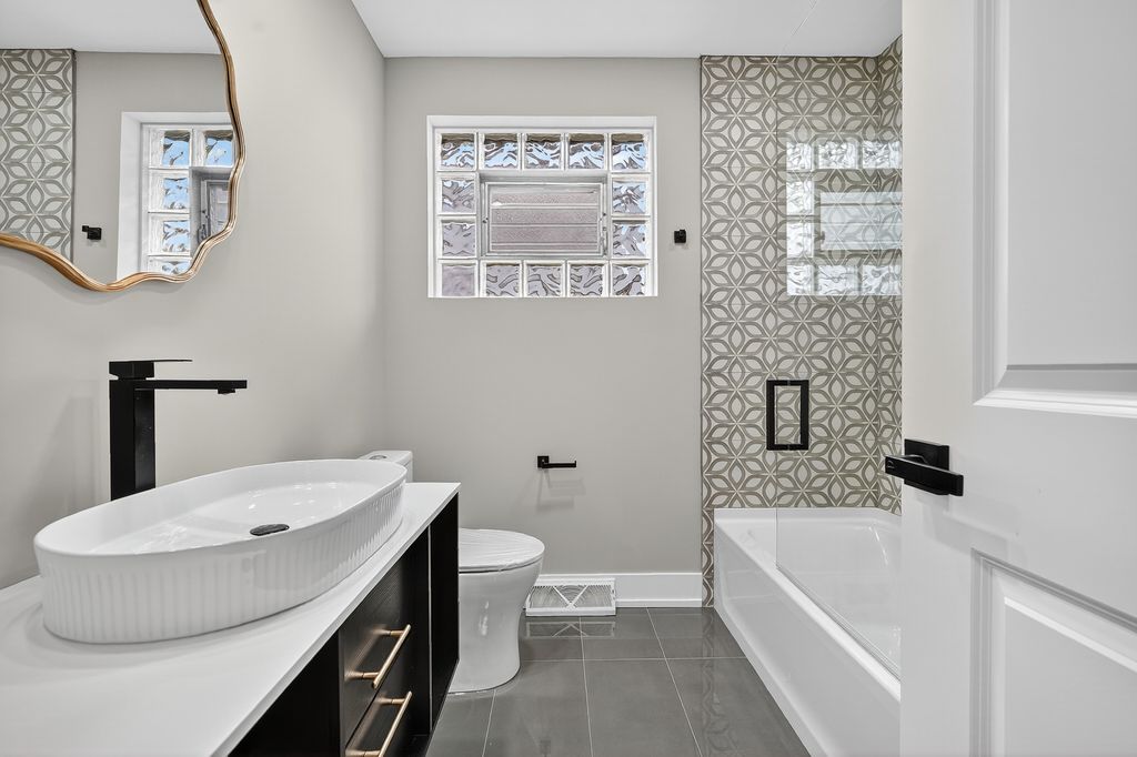 Step into this beautifully remodeled 5-bedroom, 2.5-bathroom home that perfectly blends modern elegance with everyday comfort. Featuring an open-concept floor plan, this home is designed for both stylish entertaining and functional living. Enjoy rich hardwood flooring throughout the main level, complemented by tall baseboards and energy-efficient LED lighting that highlight every design detail. The modern kitchen is a true showstopper, boasting tall shaker-style cabinets , stainless steel appliances , black hardware , and a dramatic quartz waterfall-edge breakfast peninsula - the perfect place to gather with family and friends. The finished basement offers versatile space with luxury waterproof vinyl flooring , a sleek walk-in shower , and floating bathroom vanities that add a contemporary touch. Every corner of this home has been thoughtfully upgraded with designer finishes , creating a cohesive and luxurious aesthetic. Additional highlights include: Spacious bedrooms with ample natural light ,Stylish floating cabinets in bathrooms , Black modern fixtures and hardware throughout , Walk-in shower in the basement bathroom . Plenty of storage and modern conveniences throughout This move-in-ready home is a rare find - beautifully updated, thoughtfully designed, and ready to welcome its next owner
