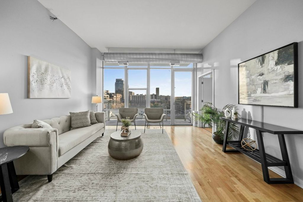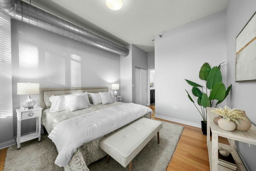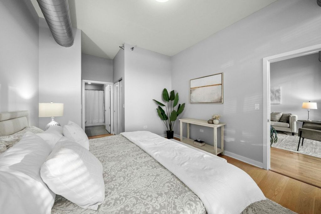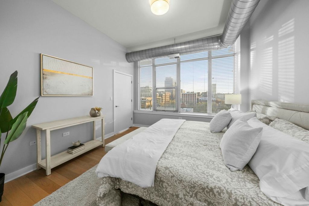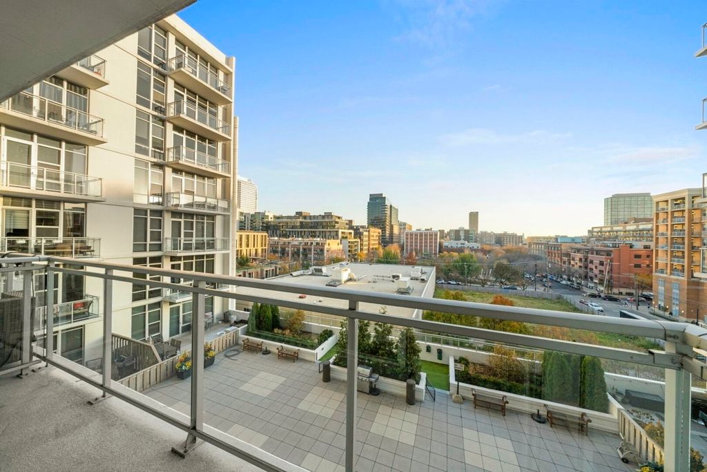 Live in the center of the West Loop in this bright, south-facing 1 bed / 1 bath condo, perfectly positioned for modern city living. The open-concept layout features a spacious kitchen with brand-new stainless steel appliances, granite counters, maple cabinetry and a large island. Floor-to-ceiling windows flood the living and dining area with natural light and lead to a private balcony, your spot for morning coffee or unwinding at sunset. The generous bedroom suite offers excellent closet space and direct access to the dual-entry bathroom. In-unit laundry completes this move-in-ready home. Premier building with secure entry, door staff, fitness center, party room, rooftop sundeck, dog run and 4th floor sundeck. All of West Loop's best is right outside your door including Madison Street shops, Whole Foods, Mariano's, Randolph Street's renowned restaurants, Fulton Market, and Mary Bartelme Park. Deeded garage parking available for purchase.