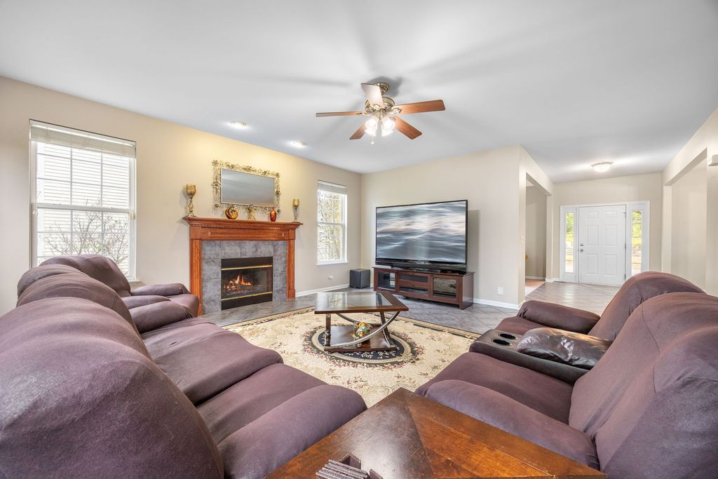 Welcome to 2566 Rourke Drive, a beautifully maintained 4-bedroom, 3.1-bathroom home offering generous living spaces and timeless appeal. Perfectly situated in the highly desired Amber Fields subdivision, this residence combines comfort, size, functionality, and classic style. Step inside to an inviting open layout filled with natural light. The kitchen features rich cherry wood cabinets, white appliances, and plenty of counter space-creating a warm and welcoming hub for family meals and entertaining. Adjacent to the kitchen, the spacious family room, strategically placed in the corner, provides east and south sun exposure, with a cozy fireplace, a perfect spot for relaxing or hosting gatherings. Tile flooring throughout the first floor provides durability along with easy maintenance. The formal dining and living areas add a touch of elegance, while the main level also offers an office, laundry room with cabinets and a wash basin, and half bathroom. Upstairs, retreat to the primary suite, complete with 2 California walk-in closets, hardwood floors, vaulted ceilings, and a private ensuite bath featuring dual sinks, a soaking tub, and a separate shower. Three additional bedrooms with an additional LARGE (18x17) Loft/family room. All bedrooms include large walk-in closets with custom buildouts. A fully finished basement expands the living space with a kitchenette that includes a mini fridge, microwave, cabinets, and counter space - ideal for entertaining. Enjoy outdoor living in the private fenced backyard and maintenance-free TREX deck, perfect for summer barbecues and evenings under the stars. The 3-car garage offers ample space for vehicles and storage. NEW roof with Dual zone HVAC (2nd Floor AC 2018), ( 2nd Floor Furnace 2017). Located close to parks, shopping, dining, and top-rated District 308 schools.