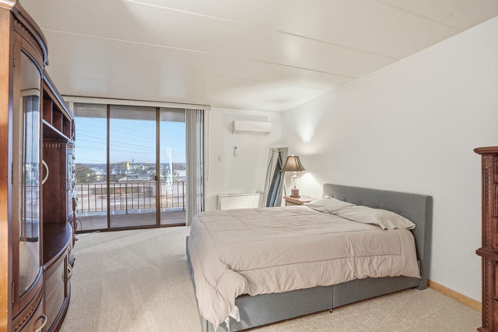 Welcome to 2304 Holiday Terrace, Unit 505! A beautifully maintained fifth-floor condo located in the iconic round brick building. This one-bedroom, one-bathroom unit offers comfort, convenience, and impressive outdoor space. Inside, you'll find new carpet, fresh paint, and an open-concept living/dining area. The kitchen comes fully equipped with a refrigerator, microwave, dishwasher, and electric range. Both the living room and bedroom feature sliding doors that lead to an expansive private balcony with stunning views, perfect for relaxing or entertaining. Additional highlights include a custom brick accent wall, a dry bar with mini fridge, and in-unit laundry for added convenience. The unit also features mini-split heating and cooling systems in both the living room and bedroom for efficient temperature control. This condo includes one assigned covered parking space and one storage unit. The building offers an elevator, and the low monthly assessment covers water and trash. Conveniently located with easy access to the 80/94 expressway and within walking distance to local shopping and restaurants. Don't miss your chance to view this wonderful unit, schedule your showing today!