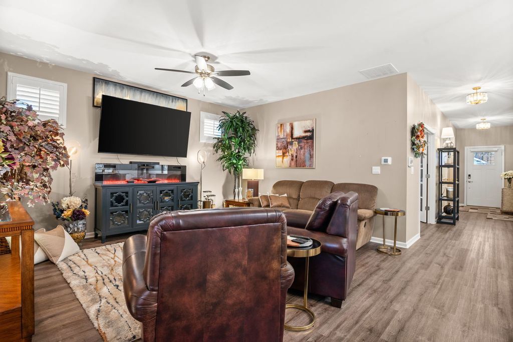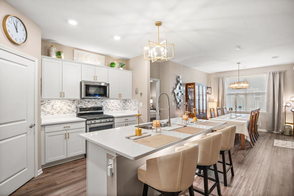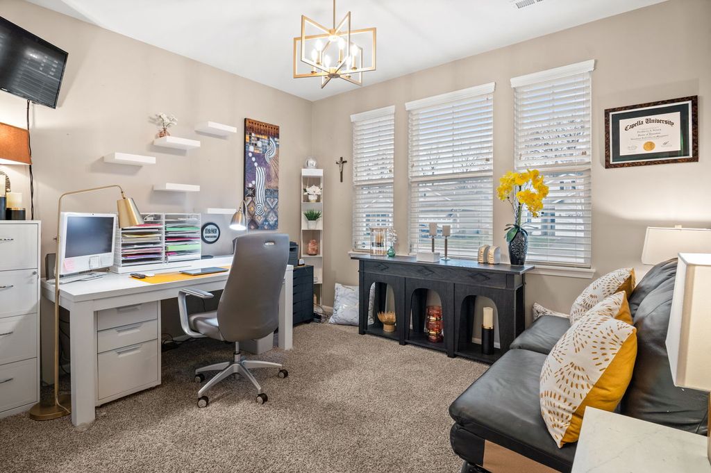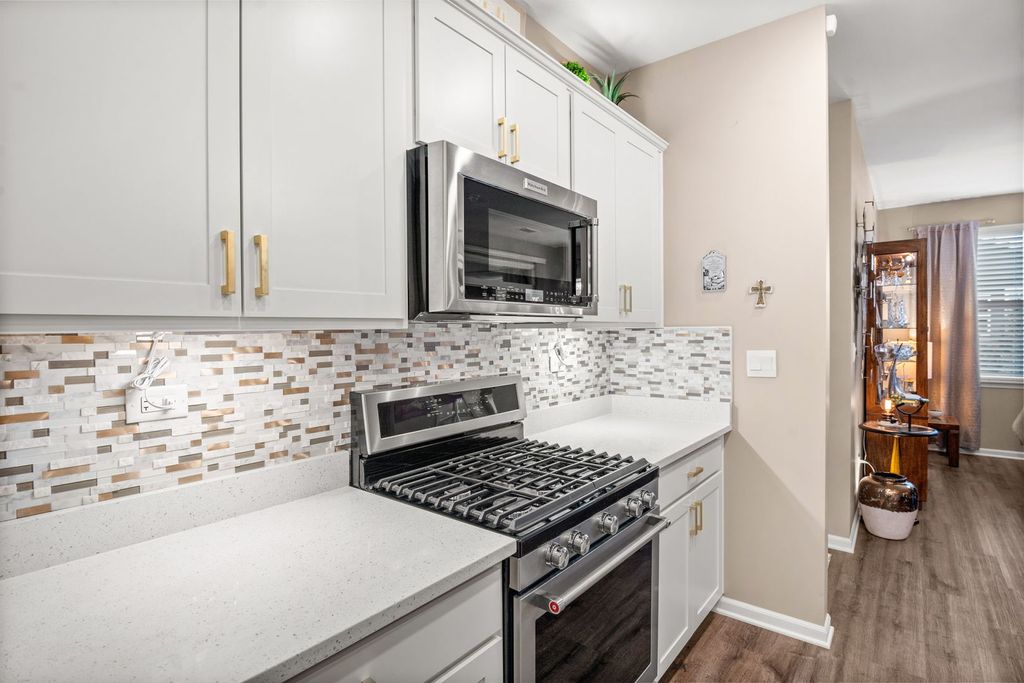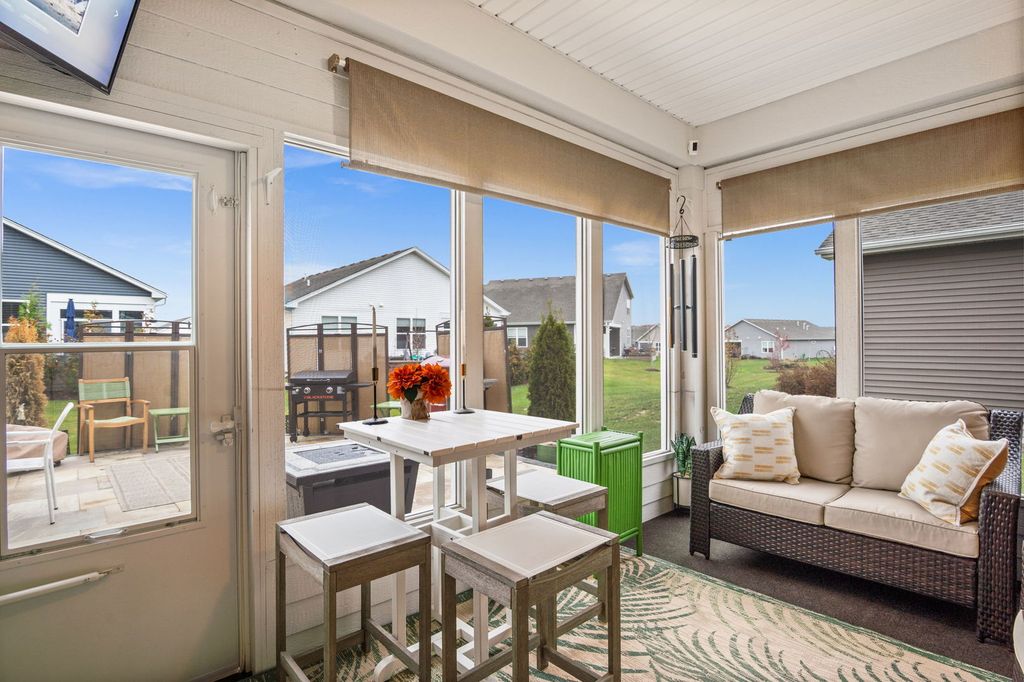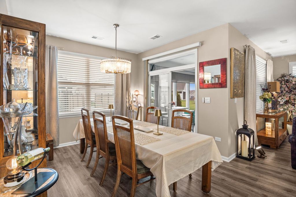 Set in the popular Lincoln Valley neighborhood of North Aurora, this immaculate move-in ready 3 bedroom, 3 full bath two story offers a stylish blend of comfort, convenience and community amenities. Over $65,000 in upgrades! The landscaped lot features a large natural stone patio, video doorbell and a 2 car garage, while residents enjoy access to the clubhouse with pickleball and bocce ball courts, pool and exercise facilities. Inside, the open floor plan flows with engineered vinyl plank flooring and neutral decor, leading from the living room to a dining room with a slider to an enclosed patio. The gourmet eat in kitchen shines with quartz countertops, high-end stainless steel appliances, a decorative tile backsplash, under cabinet lighting, an island with a breakfast bar and a walk in pantry. A separate office/den add versatility, and the first floor primary suite provides a private retreat with its own bath and walk in closet. 2nd main level bedroom and full bath. Upstairs offers a huge loft, third bedroom and full bath. Upgraded ceramic tile flooring in all bathrooms. Smart thermostat, security system, abundant ceiling fans and an HOA that covers lawn care and snow removal round out an easy living experience close to the Fox River, parks, the interstate and more. Exterior solar lights are negotiable.