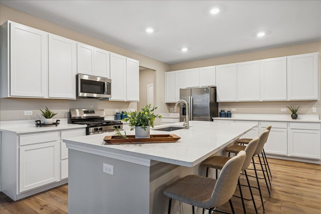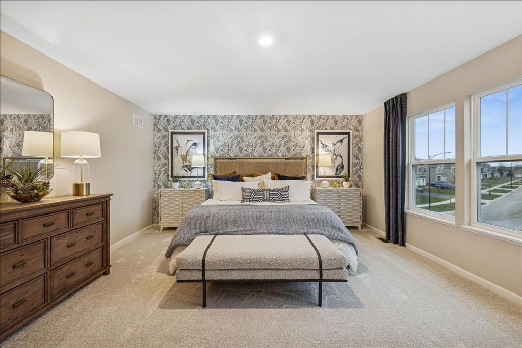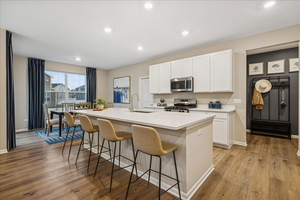 Impressive Former Model Home is Ready for IMMEDIATE DELIVERY. Filled with beautiful decorator touches throughout, including stunning on-trend slate blue accent walls and modern wallpaper, this VERY popular Rainier floorpan has NEVER been lived in and can now be your Dream Home. Situated on a oversized home site on a corner lot in sought after and SOLD OUT Westview Crossing just off Square Barn Rd, the home boasts 2760 sq.ft., 4 Bedrooms + LOFT, 2.5 baths, 1st floor Study/Flex room and a 3-CAR Garage. Enjoy an awesome OPEN FLOOR PLAN with a kitchen that boasts 42" white cabinets, frost white quartz tops, abundant counter and cabinet space, and a WALK IN Pantry. The family room has a modern feature wall with a sleek, contemporary electric fireplace as a focal point. Wide plank wood floors throughout main first floor main living areas and black metal spindles on the staircase add to the clean design of this home. A first floor study/FLEX room, laundry and mud room round out the first floor. The 2nd level hosts a STUNNING primary suite plus 3 additional bdrms., 2nd full bath and a great loft for that extra living space. A GREAT LOCATION: Enjoy a neighborhood park, and walking distance to Square Barn Rd. Campus with walking paths and pickle ball courts, 2 miles East of Randall Rd Corridor shops and restaurants, and minutes to the downtown Algonquin amenities w/ the beautiful Fox River front, parks, restaurants and more. Also close by is Northwestern Medicine, health clubs, golf courses and easy access to the Randall Rd. corridor shops and restaurants, including Trader Joes, Coopers Hawk, Lifetime Fitness, Target, Costco, Algonquin Commons, and more.