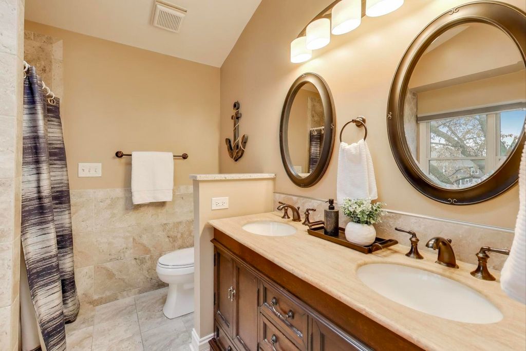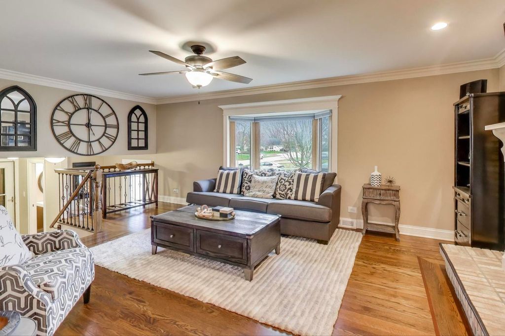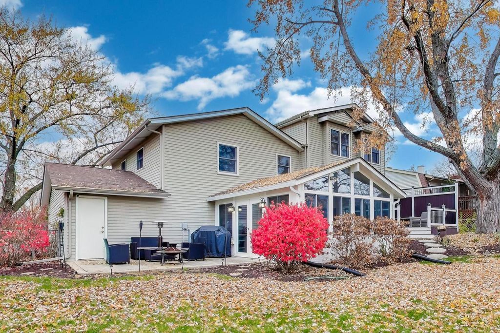 Here's your chance to own a beautifully updated 4 bed, 2.5 bath home on a premier lot in the Fremd High School district. Step inside to find gleaming oak hardwood floors, a masonry fireplace, and custom crown molding in the family room, leading seamlessly into the updated kitchen with custom cabinetry, backsplash, granite countertops, newer stainless steel appliances, and recessed lighting. Oak hardwood continues on the stairs, landing, and den. Four spacious bedrooms plus a den offer excellent flexibility for children, extended family, or work from home needs. Each bedroom features custom closet built-ins for optimal organization. All three bathrooms have been updated over the years with travertine tile and newer vanities. The primary suite includes a whirlpool tub, dual bowl vanity, and tiled shower. Recent mechanical upgrades include a 2022 roof with gutter guards, giving you peace of mind for years to come. Enjoy warmer months on the deck or concrete patio overlooking a private, fenced in backyard, or relax year-round in the bright sunroom. The wide brick paver driveway and walkway lead to a spacious two car garage with ample room for storage. Ideally located with quick access to I-90 and minutes from a variety of dining, entertainment, and shopping options.