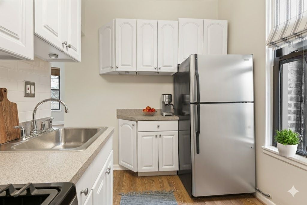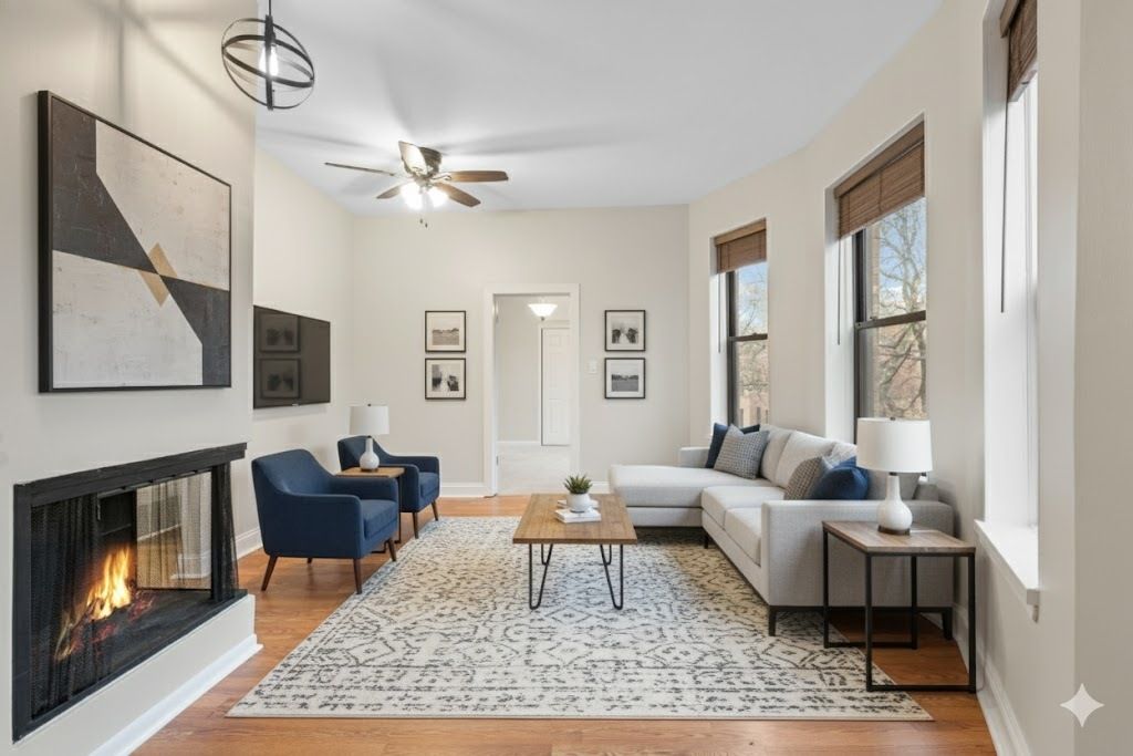 Welcome to your sun-filled, move-in-ready condo in a highly sought-after East Lakeview gated community. This top-floor gem shines with huge south-facing windows and impressive 10-foot ceilings, creating a bright and airy atmosphere. The spacious living room is perfect for relaxing, featuring a cozy wood-burning fireplace for chilly nights. The home has been completely repainted and is ready for its new owner. You'll enjoy a bright, contemporary kitchen with stainless steel appliances and convenient in-unit portable washer/dryer. The generously sized primary bedroom is designed as a true retreat, with a separate office area. Step out to your semi-private outdoor deck, a charming, sun-drenched retreat perfect for alfresco dining, morning coffee, and gardening. LOCATION IS UNBEATABLE! This home is a commuter's dream, with express buses right outside your door and quick access to the 'L' trains. You're just a few blocks from the Lakefront Trail, and steps away from dining, nightlife, Target, Marshall's, and all the vibrant amenities East Lakeview offers. The incredible transit access makes commuting a breeze, and monthly parking options are available nearby. Experience the best of East Lakeview living from your perfect top-floor retreat.