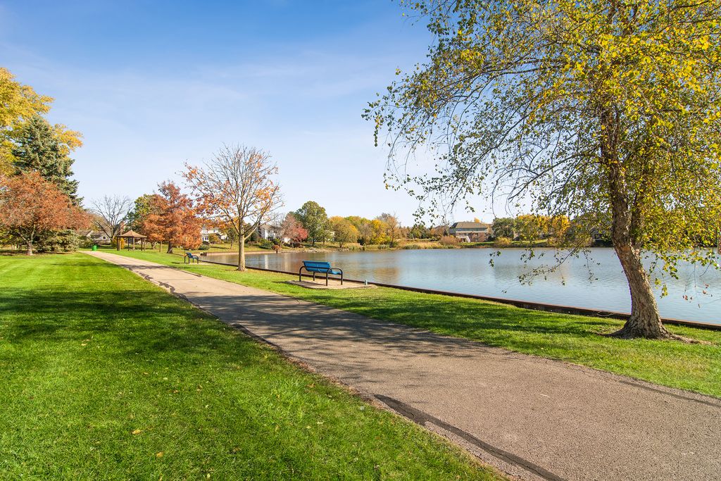 Rarely does a property become available that offers such a perfect blend of serene lake views and modern comforts. Nestled in the desirable Hunting Ridge neighborhood, this captivating home boasts breathtaking, unobstructed vistas of Peregrine Lakes, making it a true haven for nature enthusiasts. As you enter, you're welcomed by an inviting foyer that leads into the expansive living room, adorned with elegant parquet floors. The large windows flanking the living space bathe the room in natural light while framing stunning views of the picturesque lake, creating an ambiance that is both warm and inviting. The open-concept design seamlessly connects the family room, featuring a cozy fireplace flanked by built-ins, to the kitchen, which is perfect for casual dining with an eat-in area. Step outside to your private patio, where you can soak in the beauty of lakeside living while enjoying peaceful moments or entertaining guests. For more formal gatherings, the separate dining room with hardwood floors offers an elegant setting. The convenience of a half bath and a laundry room/drop zone off the garage rounds out the main level, ensuring everything you need is at your fingertips. Venturing upstairs, you'll discover the primary suite, complete with a spacious walk-in closet and a private bath-your personal retreat. Three additional generously sized bedrooms and a full bath provide ample space for family or guests on this level. The fully finished basement adds even more living space, perfect for recreation, relaxation, or hosting gatherings. This home also boasts a prime location just a short stroll away from top-ranked schools, beautiful parks, Harper College, a golf course, and convenient Metra access at both Arlington Park and downtown Palatine.