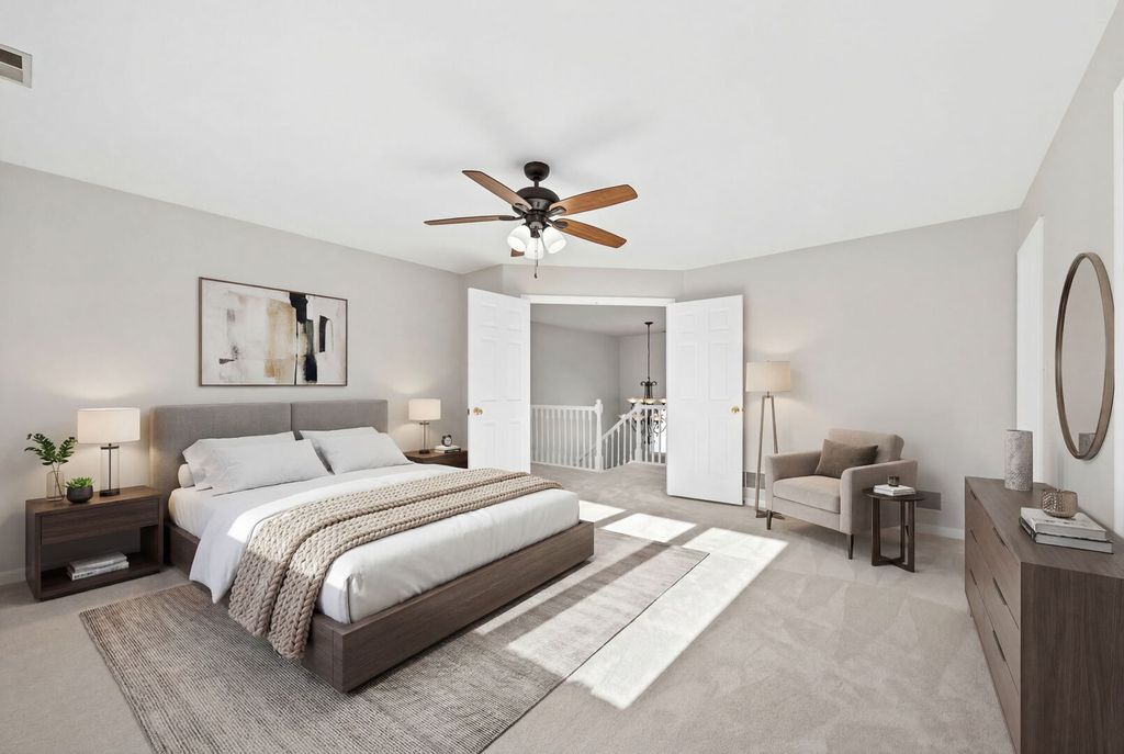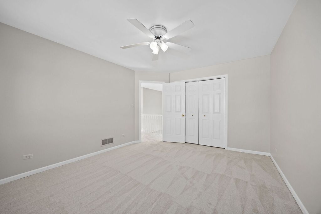 Stunning 3-bedroom, 3.5-bathroom home offers 3,546 square feet of beautifully appointed living space across two stories plus a finished walkout basement. Hardwood flooring flows throughout the main level, creating seamless elegance from room to room. Grand two-story foyer welcomes guests with chandelier and large window, setting the tone for this exceptional residence. Living room provides comfortable gathering space, while dining room showcases chandelier and sophisticated tray ceiling. Two-story family room serves as the heart of the home, featuring ceiling fan, can lights, custom built-ins, and gas-started wood burning fireplace with stone surround, all complemented by soaring large two-story windows. Kitchen impresses with island, white cabinetry, stainless steel appliances, striking Maravilla Double Herringbone backsplash, and can lighting, plus convenient dining space. Powder room and laundry room leading to garage complete the main level. Second level houses luxurious primary suite with spacious walk-in closet and large en-suite bathroom boasting soaking tub, separate shower, dual vanity, and custom cabinetry. Two additional bedrooms feature ceiling fans and closet organizing systems, served by full bathroom with shower/tub combo. Catwalk opens dramatically to family room and foyer below. Finished walkout basement extends living space with recreation room featuring bar, full bathroom with shower, and a bonus room providing flexibility for a workout space, playroom or use as a bedroom if desired. Basement walks out to back patio and fenced yard, perfect for entertaining and privacy. Exterior combines brick and vinyl siding with professional landscaping and front pavers installed in 2023. Trex deck provides outdoor relaxation space, while two-car attached garage offers convenience. Roof replaced in 2022 ensures peace of mind. Steps away from Meadows Swim Club and Kingston Park, minutes from Morton Arboretum and Downtown Lisle's diverse dining and shopping scene. Convenient access to I-88 and I-355 ensures effortless commuting, while nearby Lisle Metra Station provides excellent public transportation options. This extraordinary residence demands to be experienced in person. Schedule a private showing today!