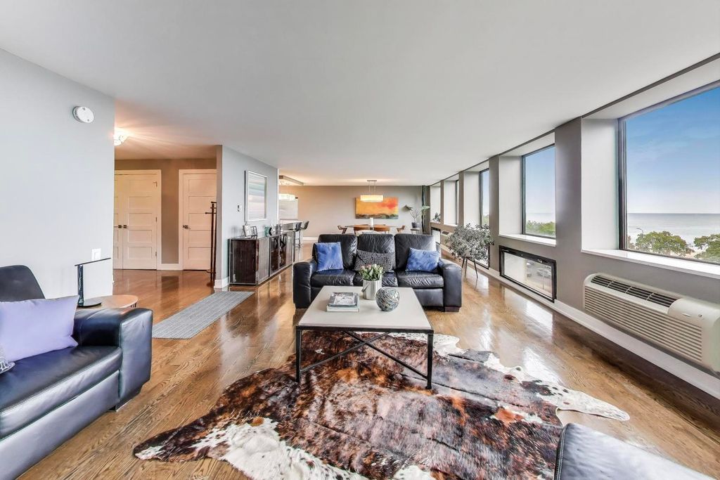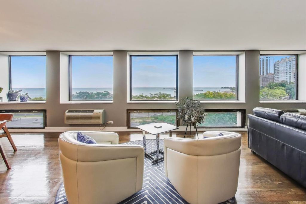 Gorgeous views of Oak Street Beach, Lake Michigan and the Lakefront Trail! Perfect Gold Coast location for beach, shopping and dining. The pinnacle of all that's great about Chicago. This hip and stylish home truly has it all!! A gracious foyer leads to this impeccably updated home with Floor to ceiling windows that top the trees below. Real walnut stained hardwood throughout, designer lighting and updated baths. Large newer Chef's kitchen with quartz and high end appliances opens to the expansive living area. Primary Bedroom features cove lighting, a large walk-in closet and a western view. The spa like Primary Bath features heated floors, large shower with multiple shower heads, and double sink. All 3 bedrooms have western views and hardwood floors. The 2 1/2 bathrooms have been updated with the hall bath featuring neutral tile and a rain shower head. Recently the current owner has added alabaster sills in the living room, new ac units in the bedrooms, hand crafted cabinetry in the office and freshly painted. There is an in-unit laundry, and multiple closets for storage space. This building has exceptional security and amenities which include 24 hour doorman, valet parking in garage, pool, sundeck, exercise facilities, party room, storage unit, and on site management and engineer. HOA includes all the amenities PLUS water, parking, security, TV/Cable, exterior maintenance, lawn care, scavenger, snow removal, Wi-Fi, and Internet access. Gorgeous unit that is move in ready! Quality renovation with solid core doors and the best hardware!