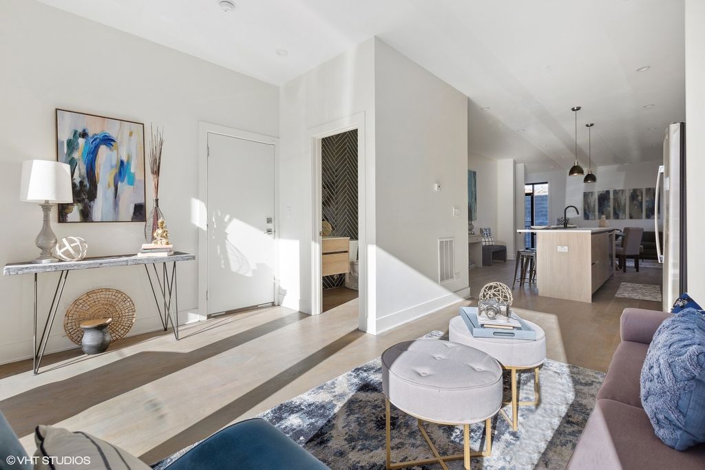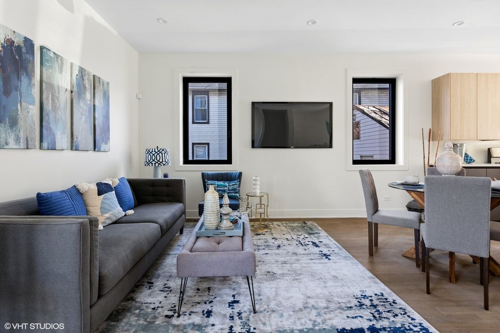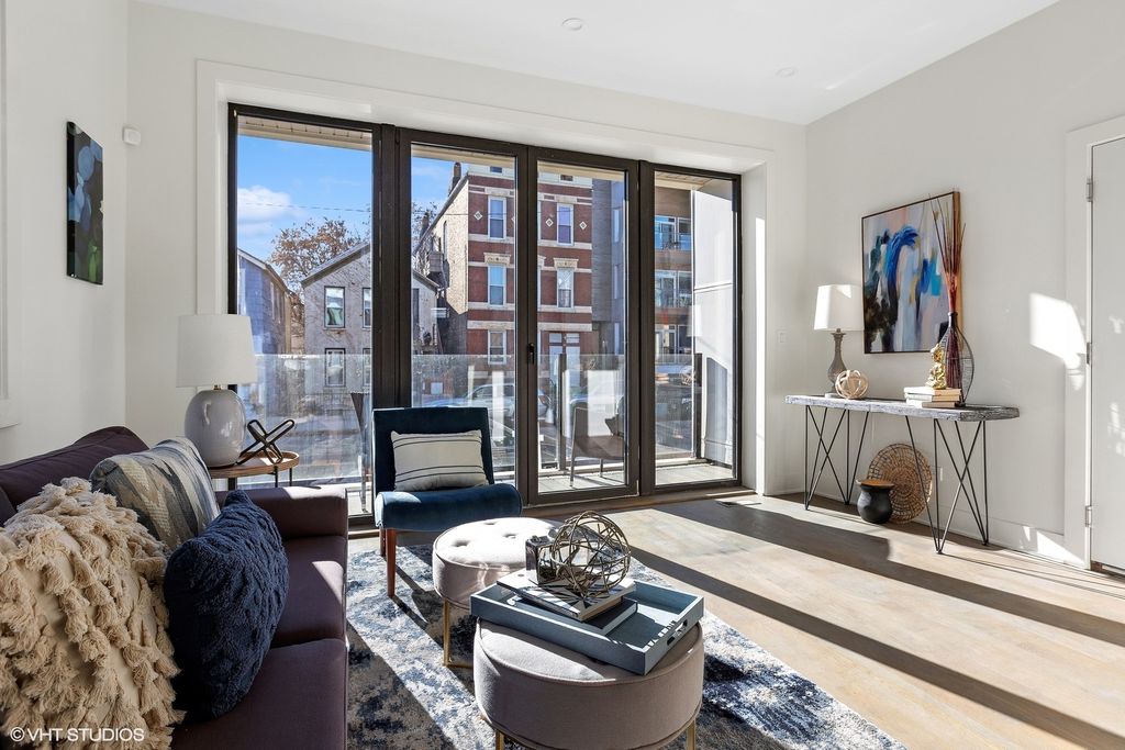 This new, contemporary 3-bedroom, 2.1-bath duplex condominium at 718 W 17th St offers a practical layout and modern finishes in East Pilsen. The main level features a wide kitchen with clean, modern cabinetry, quartz countertops, stainless steel appliances, and a microwave that vents to the outside. Front and rear outdoor spaces extend the living area and provide room to relax or entertain. All three bedrooms are located on the lower level for added privacy. The primary suite includes a walk-in shower and a generous walk-in closet. Two additional bedrooms share a bathroom with a double sink and a soaking tub. Additional features include in-unit laundry, hardwood floors, central air/heat, and garage parking. The location provides convenient access to Halsted Street dining and shopping, UIC, University Village, Downtown, the South and West Loops, Chinatown, nearby parks, expressways, and CTA options. Street parking for guests is generally easy. The home is move-in ready, and a quick close can be accommodated."