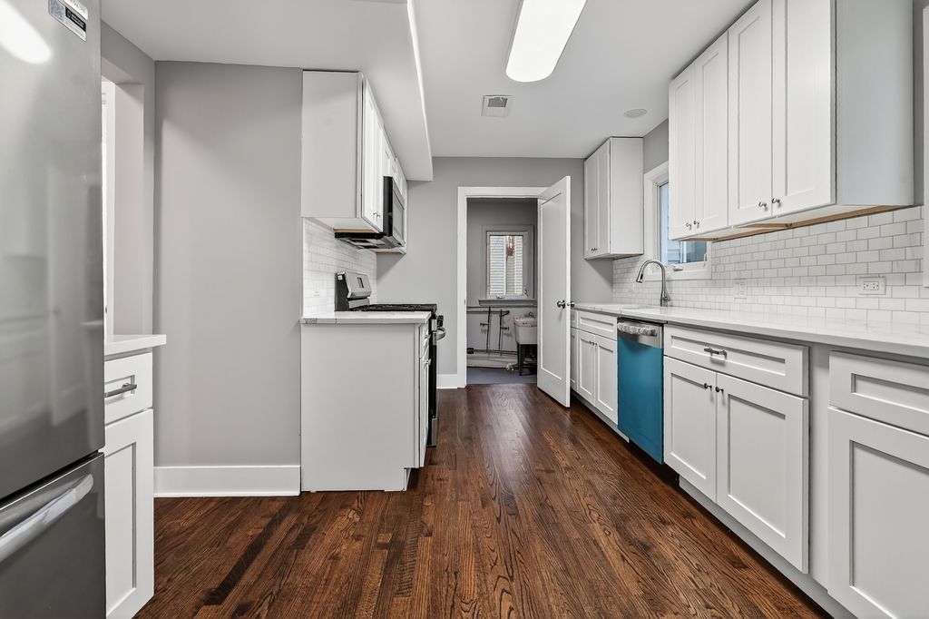 Beautifully rehabbed 3 bedroom, 2 bath home on extra large lot in great Melrose Park location. The newly carpeted 2nd floor has two bedrooms, including a massive master, and your dream bathroom. 1st floor has a 3rd bedroom and beautifully finished 2nd full bathroom, as well as separate living and dining rooms. The gorgeous modern kitchen has white shaker cabinets with real plywood construction (no particle board here!), quartz countertops, and brand new stainless steel appliances. Freshly finished oak hardwood floors span throughout the first floor. New insulation throughout the home will keep you warm and toasty through the winter without soaring utility bills. An enclosed back porch and open back deck lead to the massive backyard that comes with this nearly 1/4 acre lot as well as a 2-car garage. Move quickly to celebrate the holidays in your new dream home! Agent has an ownership interest. Professional photos coming later this week. Showings to begin this Saturday, 11/22.