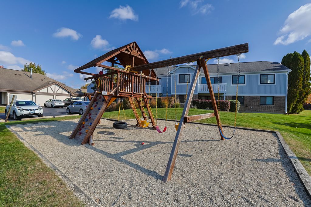 Rarely available 3-bedroom, 2nd-floor unit in good condition- to be sold AS IS. Recent mechanical updates include furnace, A/C, humidifier, and HWT (2023), plus newer washer/dryer (2017) and patio doors. Spacious bedrooms; Master suite with WIC and updated bath. Hardwood in entry and kitchen. Kitchen features oak cabinets, granite counters, and charming breakfast area. Living room with fireplace, built-ins, and balcony access (also from kitchen). Beautiful complex with pool and low HOA. No rentals. Close to parks, shopping, expressways, and award-winning schools.