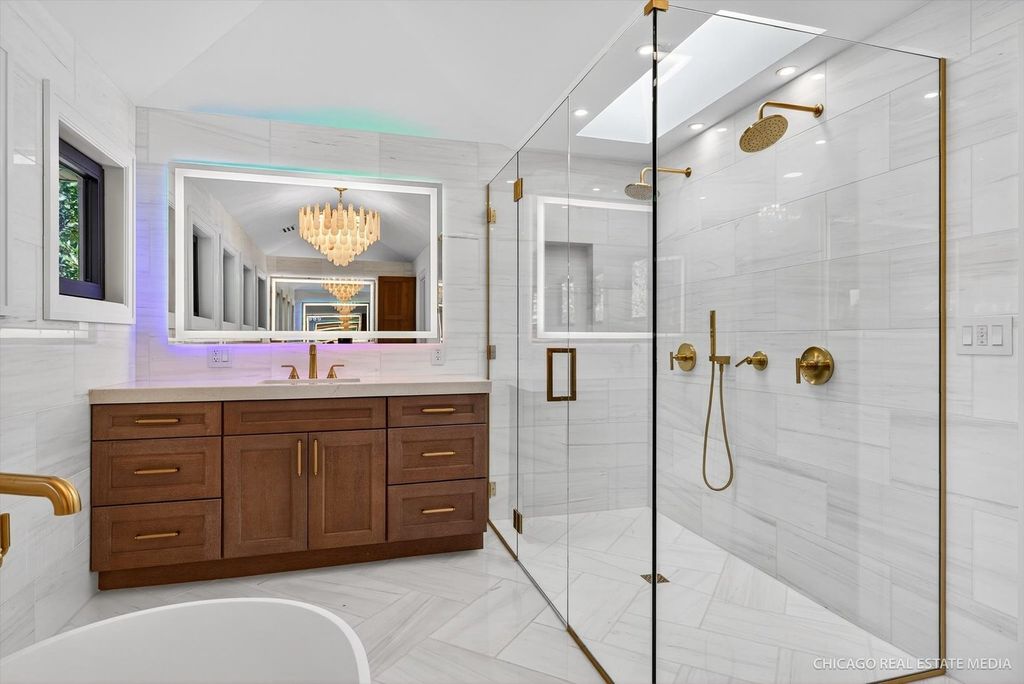 LUXURY WATERFRONT RESIDENCE IN GATED FALLING WATERS COMMUNITY! EXQUISITE- TWO STORY HOME, WITH FULLY WALKOUT LOWER LEVEL, OFFERS OVER SIX THOUSAND SQ LIVING SPACE. 5 BEDROOMS, 5.1 BATHS AND A STUNNING ARRAY OF HIGH- END FINISHES! THROUGHOUT THE HOME YOU'LL FIND OAK HARDWOOD FLOORS ON THE FIRST AND SECOND LEVELS WITH AN ELEGANT CHEVRON PATTERN. THE HEART OF THE HOME IS A GOURMET KITCHEN, CUSTOM MADE CABINETS, CRYSTALLO STONE LUXURY COUNTERTOPS AND QUARTZITE BLACK GOLD KITCHEN ISLAND! SHOWCASING PREMIUM THERMADOR APPLIANCES, HIGHLIGHTED BY A BUILD-IN REFRIGERATOR AND A STATE-OF-THE-ART COFFEE MACHINE! ABSOLUTELY STUNNING CRYSTALLO STONE FIREPLACE GLOWS BENEATH DIMMABLE LIGTHS, CREATING AN AMBIANCE OF REFINED AND ELEGANCE! BREATHTAKING CHANDELIERS! ALL NEW CUSTOM-MADE WINDOWS AND DOORS! MASTER SUITE BOASTS TWO SPACIOUS WALK-IN CLOSETS, THE MOST GORGEOUS BATHROOM WITH MARBLE STONE TILES, HEATED FLOORING, SHOWER AND FREESTANDING SOAKING BATHTUB! AN INTELLIGENT TOILET! LOWER LEVEL OFFERS A CUSTOM MADE WALL WITH A BUILD-IN NEW 98-INCH SAMSUNG TV AND HOME THEATER SOUND SYSTEM TO ENHANCE ENTERTAINMENT! WET BAR AREA, SECONDARY KITCHENETTE, A SPA-LIKE BATHROOM WITH STEAM ROOM! CUSTOM-BUILD HIMALAYAN SALT SAUNA CRAFTED WITH AUTHENTIC HIMALAYAN SALT BLOCKS AND CEDAR BOARDS. HEATED FLOORS EXTEND THROUGHOUT ALL BATHROOMS AND SPA AREAS! TWO NEW FURNACES AND 3 NEW A/C UNITS! 3 CAR GARAGE WITH EPOXY FLOORS AND ELECTRIC HEATER, AS WELL AS AN OUTLET FOR AN ELECTRIC CAR CHARGER! ENJOY A NEW DECK WITH COVERED SUN-SCREEN AREA AND SLEEK GLASS RAILINGS, PERFECT FOR RELAXING OR ENTERTAINING WITH UNOBSTRUCTED VIEWS LUSH LANDSCAPING! PLEASE SCHEDULE YOUR PRIVATE TOUR TODAY!