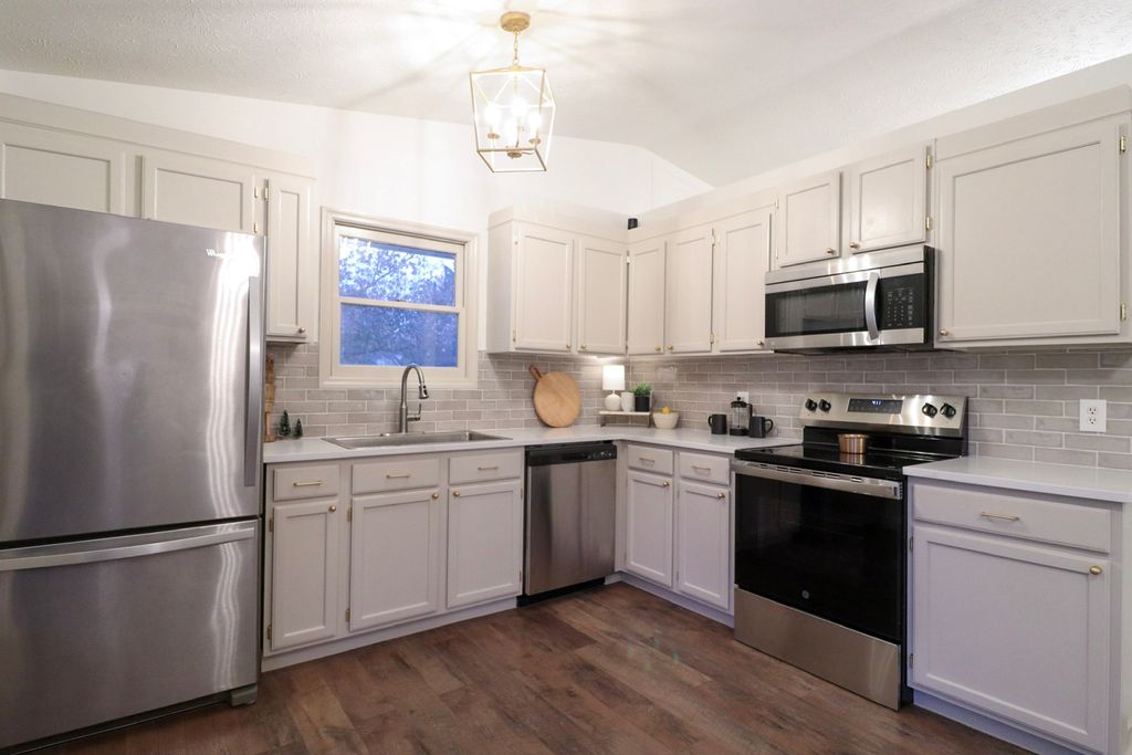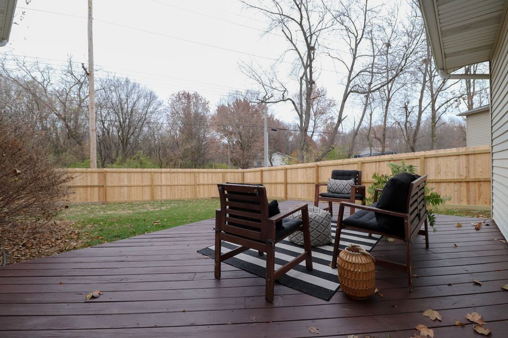If you've been waiting for your dream home, this charming cul-de-sac property surrounded by mature trees delivers everything you've imagined-and more. Thoughtfully updated throughout, the home features fresh interior paint, new picture moulding, updated light fixtures, wainscoting, wallpaper accents, a brand-new stove, and a fully renovated bathroom. A welcoming covered front porch invites you inside to the bright living area, highlighted by picture moulding and a beautiful bay window. The space flows seamlessly into the updated eat-in kitchen, showcasing painted cabinets with stylish gold hardware, stainless steel appliances, quartz countertops, a new stove, backsplash, and modern lighting. A custom built-in bench creates a cozy breakfast nook perfect for everyday dining. Notice the beautiful flooring all around. Just a few steps up, you'll find three generously sized 3 bedrooms and a remodeled full bathroom featuring a new vanity, updated lighting, modern faucets, wallpaper detail, and a chic mirror. The lower level offers a spacious family room ideal for movie nights and gatherings, along with a versatile flex room-perfect for a home office, playroom, or hobby space. This level also includes a convenient half bath and a utility room equipped with both a washer and dryer. A sliding door from kitchen opens to a large, fully fenced yard featuring a brand-new cedar fence and a spacious deck, ideal for enjoying summer evenings with family and friends. A 2-car attached garage completes this wonderful home. Agent Interest. All information deemed to be accurate but not warranted.