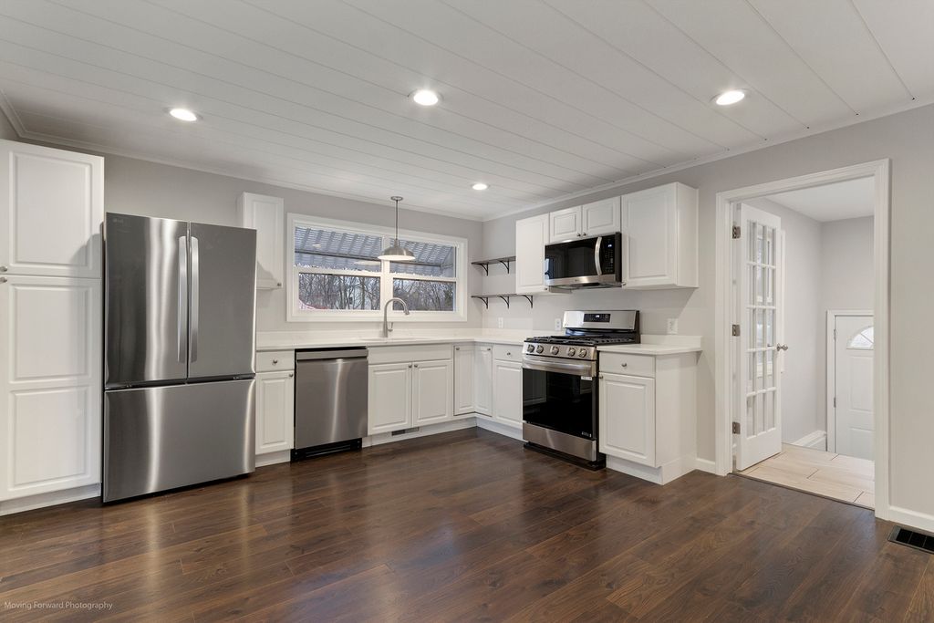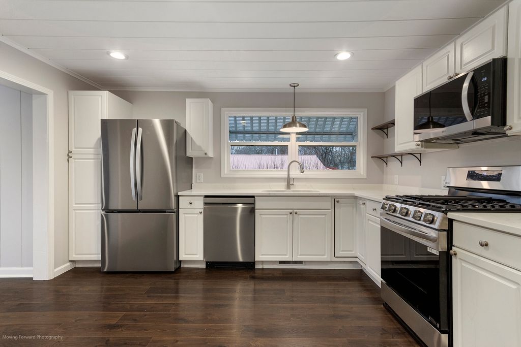 Welcome Home! This beautifully updated 3-bed, 2-bath home has been refreshed from top to bottom-inside and out. Step inside to a freshly painted interior with durable laminate flooring and a bright, spacious living room featuring a large picture window that fills the space with natural light. The recently updated eat-in kitchen offers white cabinetry, brand-new stainless steel appliances, and sleek quartz countertops. The main level includes a large primary bedroom with a custom built-in closet and an updated full bathroom with ceramic tile flooring, a new tub, and surround. Upstairs, you'll find two generous bedrooms connected by a Jack-and-Jill style full bathroom with a walk-in shower and ceramic tile flooring-perfect for added privacy and convenience. A full unfinished basement provides excellent storage space along with a dedicated laundry area (washer and dryer included!). Additional updates include: newer siding and windows, newer furnace and A/C, water softener, tiled downspouts, and two driveways for extra parking. LOW TAXES! Conveniently located near highway access and just moments from the Norway store. Don't wait-schedule your showing today! This one is sure to impress.